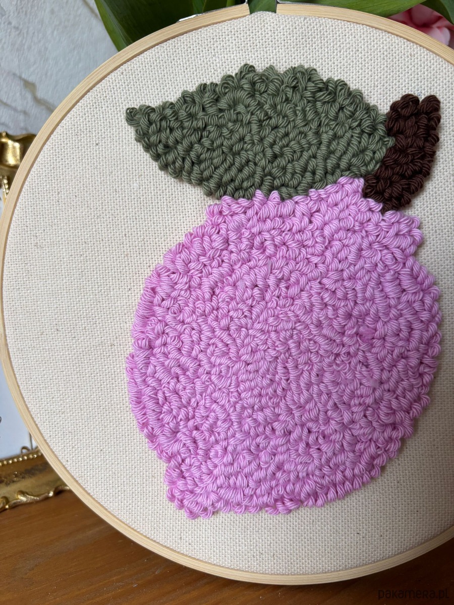 Ręcznie wykonana dekoracja ścienna w technice punch needle.