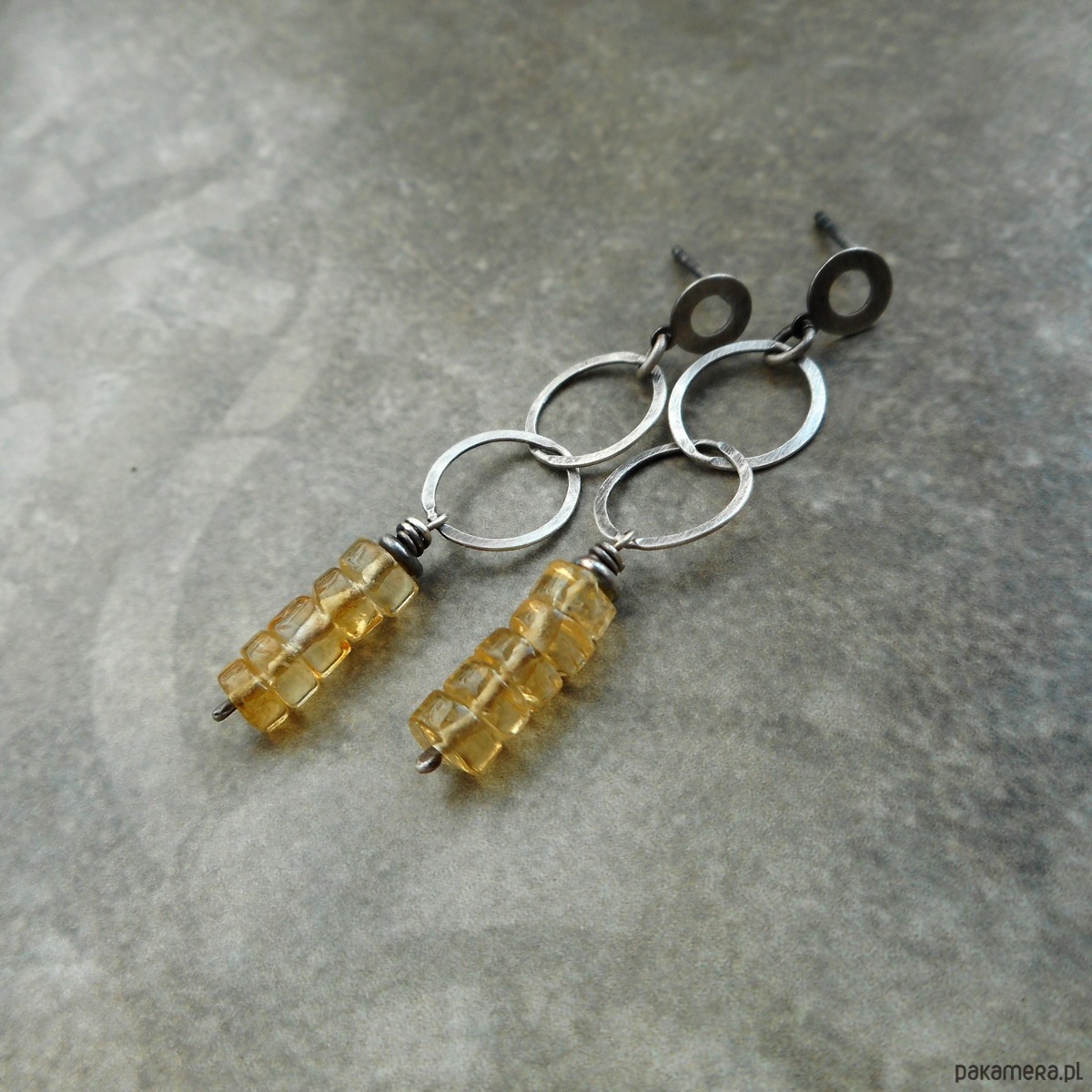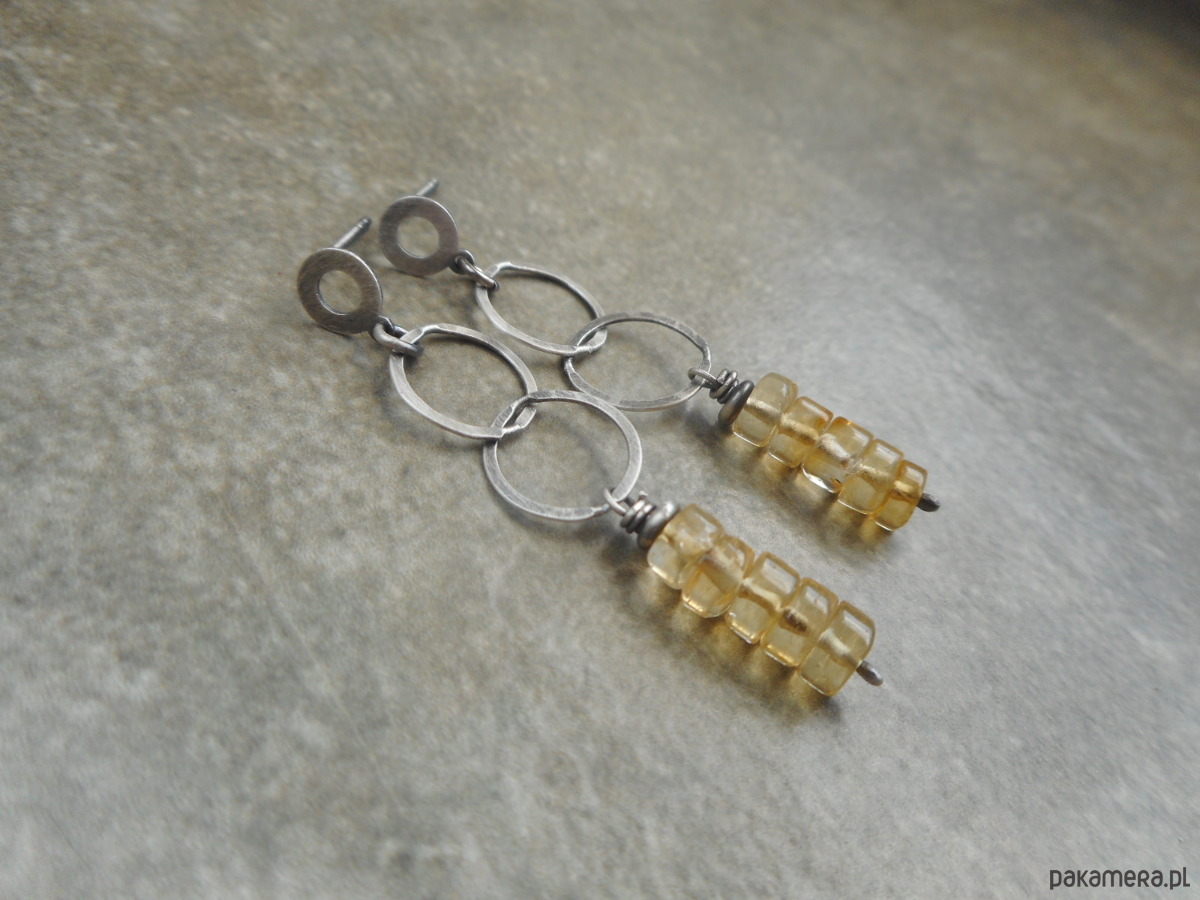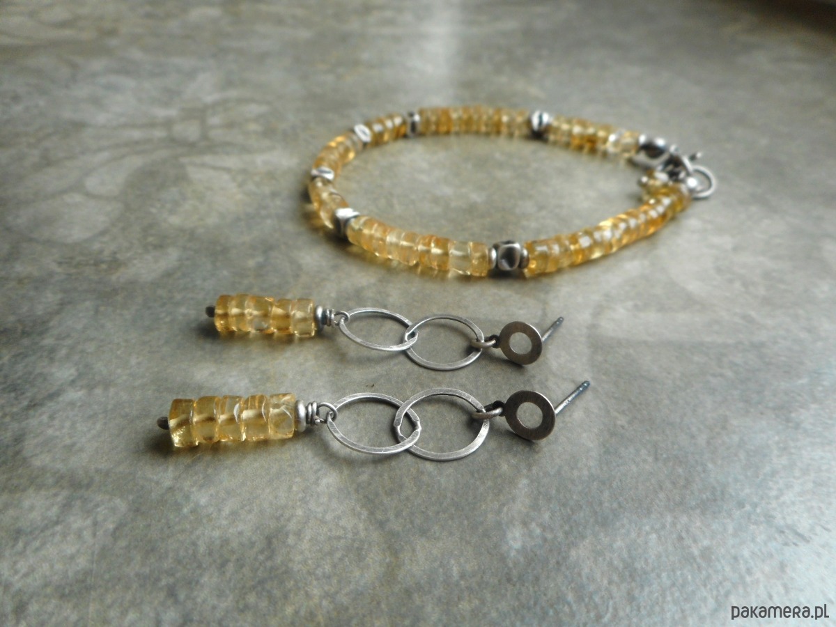 Wyjątkowe kolczyki z kamieni naturalnych i szlachetnego srebra; klasyczne wiszące, nie obciążające ucha, z pięknymi przejrzystymi cytrynami. Do kompletu polecam bransoletkę dostępną w mojej galerii.