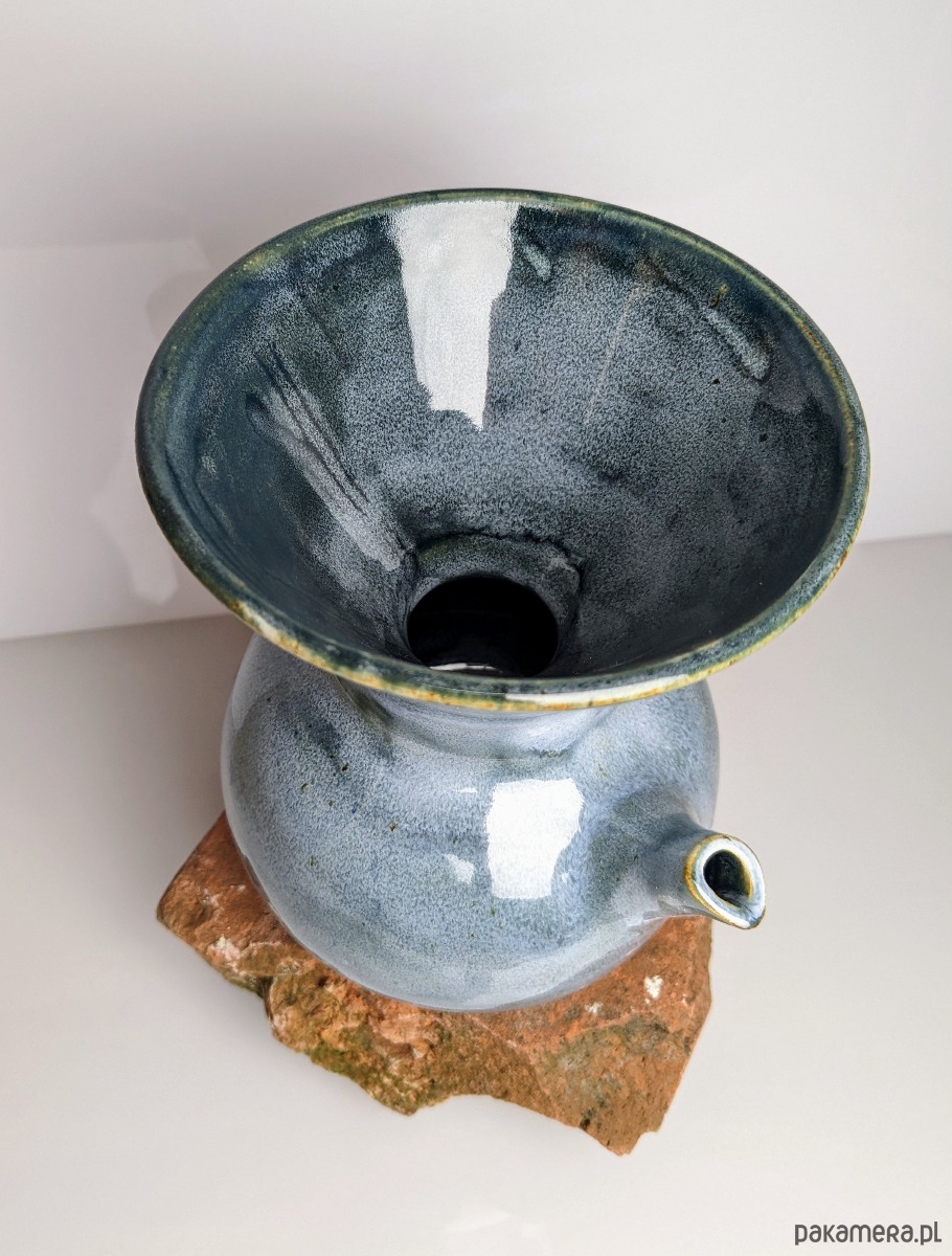 Ten piękny czajnik został ręcznie uformowany na kole garncarskim i ręcznie oszkliwiony. Dwukrotny wypał w piecu ceramicznym gwarantuje wytrzymałość na wysokie temperatury. Kawę w czajniku można zaparzać tak jak w chemexie - przy wykorzystaniu chemexowych filtrów.