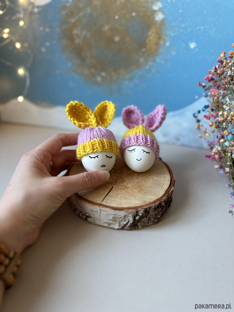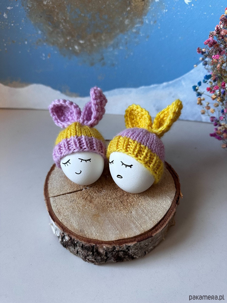 Czapeczki z uszami zająca na jajka wielkanocne - zestaw 2 szt.