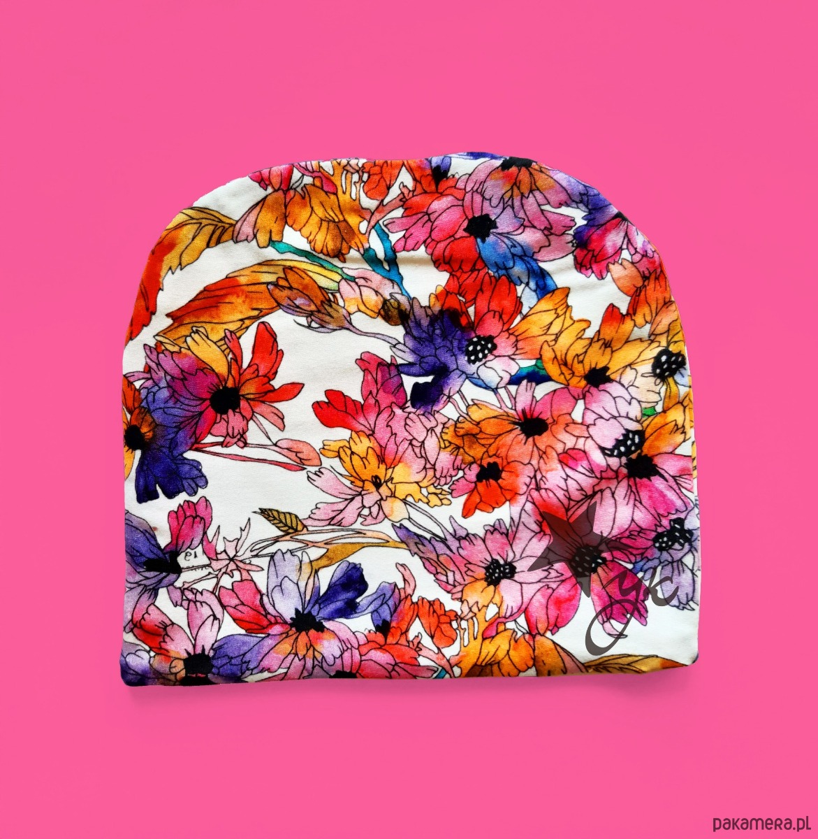 Czapka Bawełniana Jesienne Kwiaty na bieli