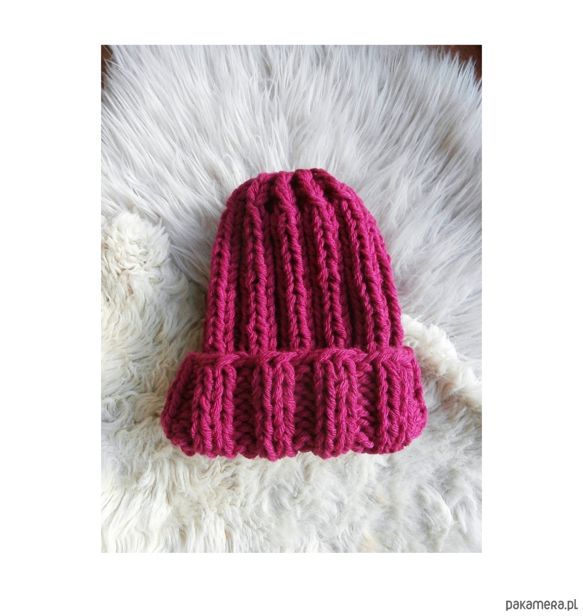 Ręcznie wykonana czapka w kolorze pięknej fuksji