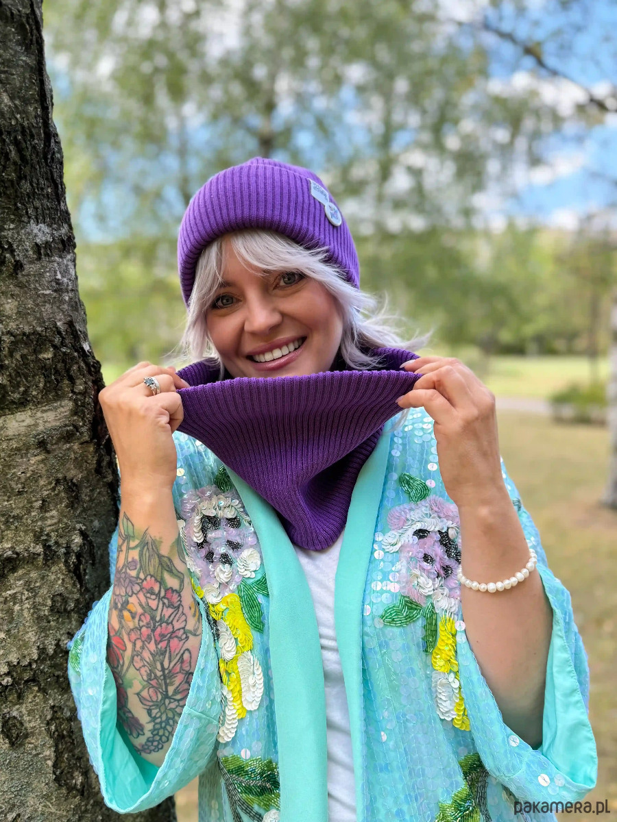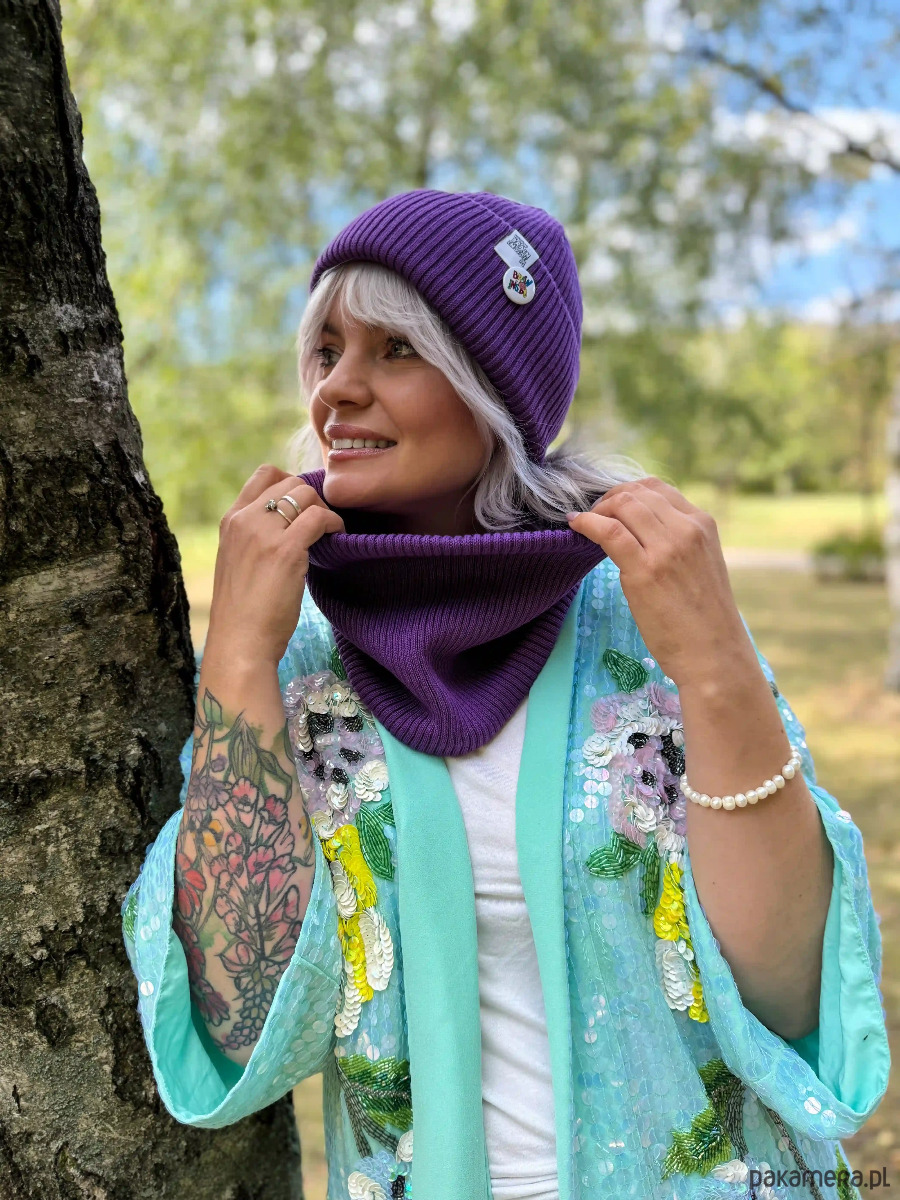 Czapka beanie z bawełny logo kolorowe Fiolet