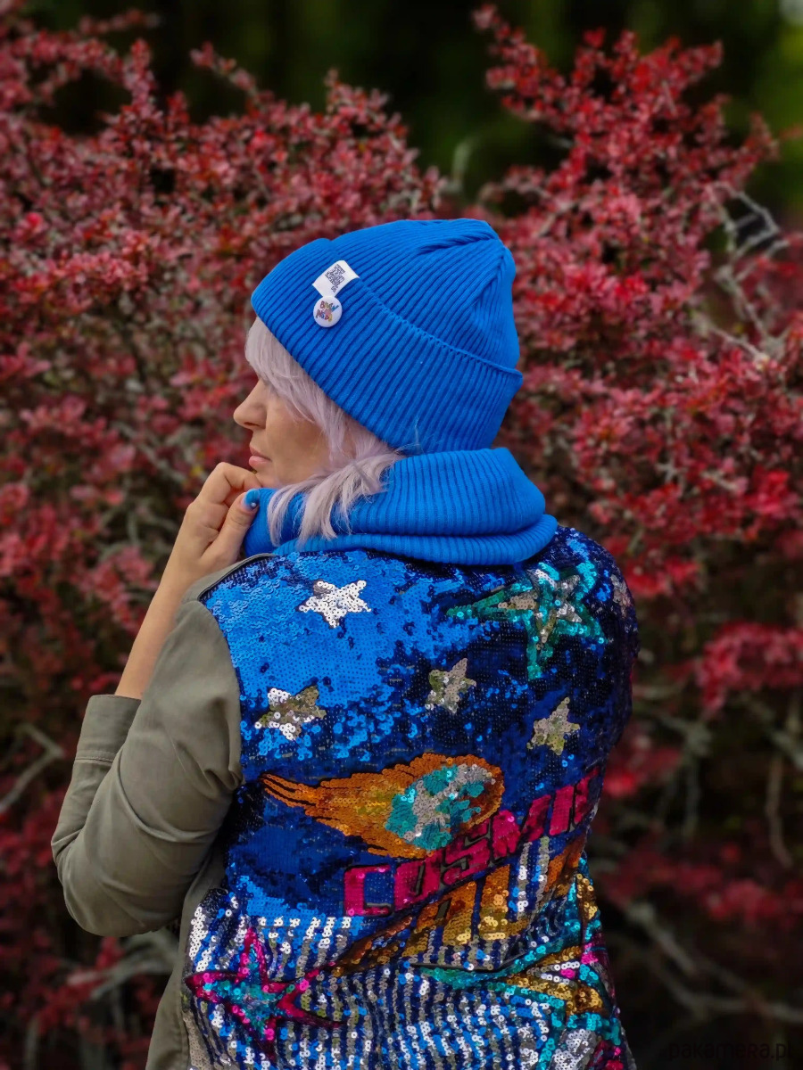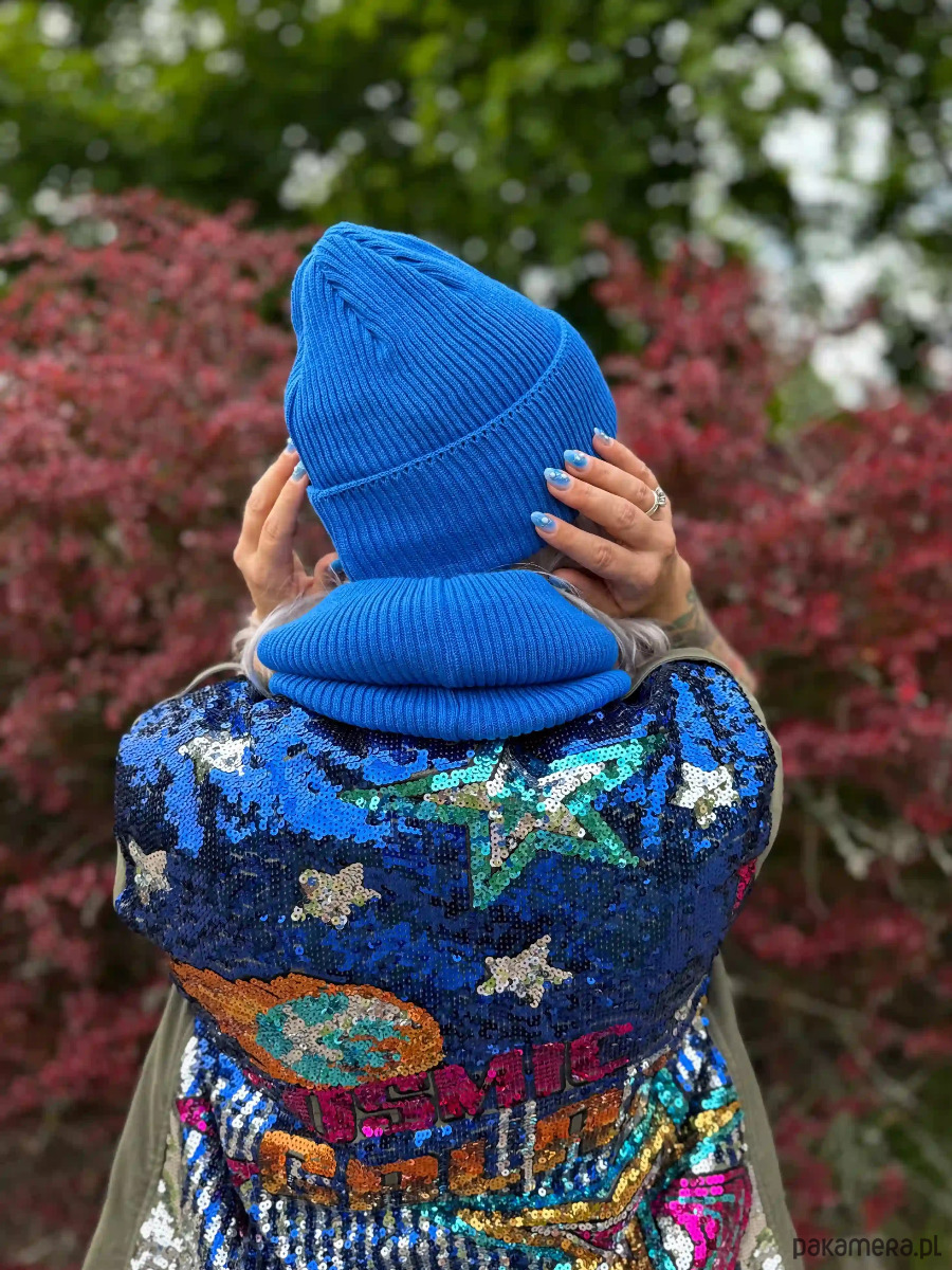 Czapka beanie z bawełny logo kolorowe Niebieski Kobalt