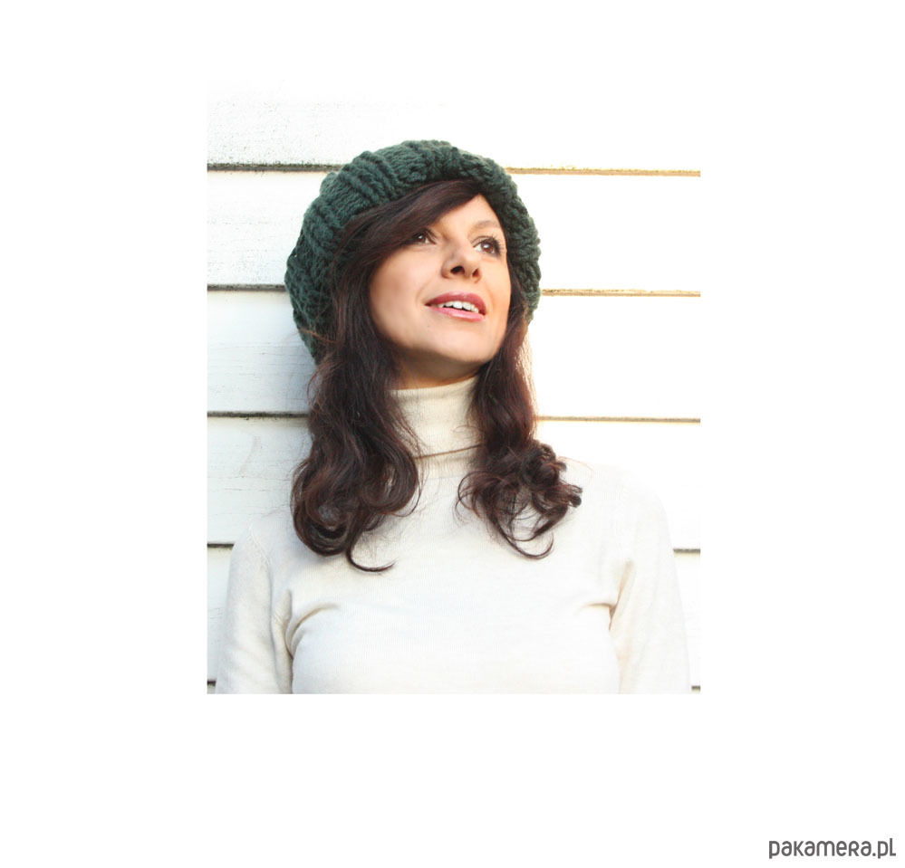 Ręcznie wykonana czapka w kolorze pięknej, butelkowej, szmaragdowej zieleni.