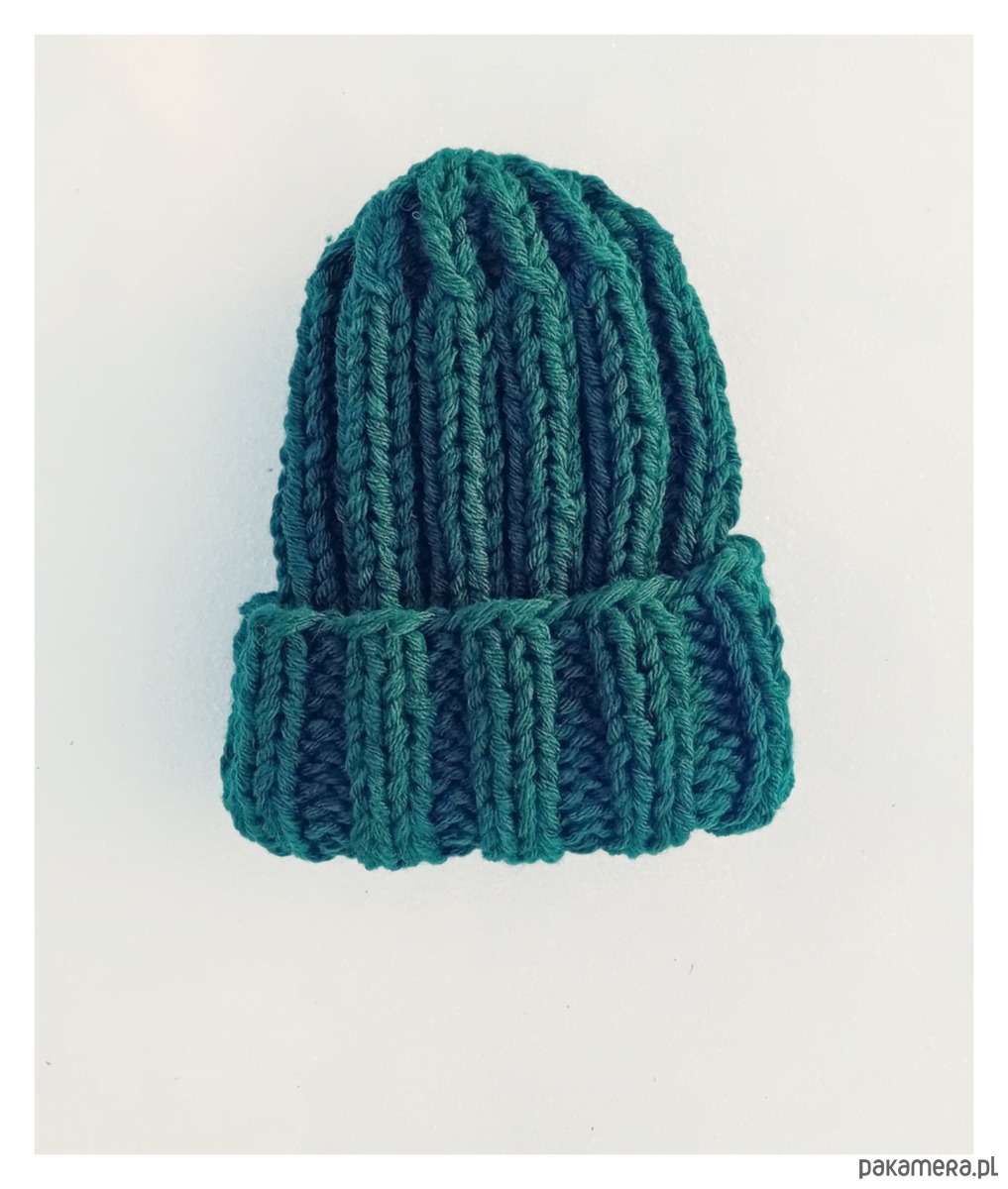 Ręcznie wykonana czapka w kolorze pięknej, butelkowej, szmaragdowe, leśnej zieleni.