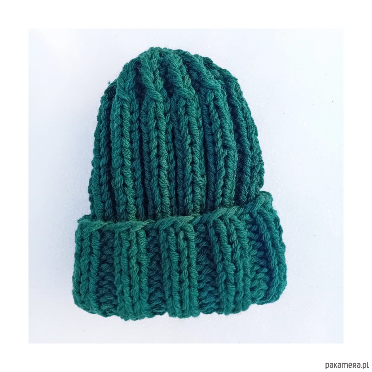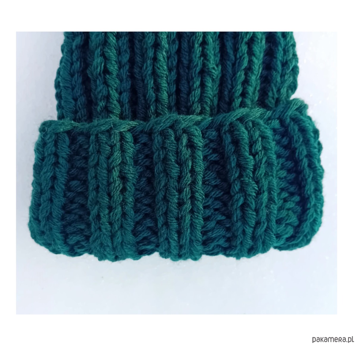 Ręcznie wykonana czapka w kolorze pięknej, butelkowej, szmaragdowe, leśnej zieleni.
