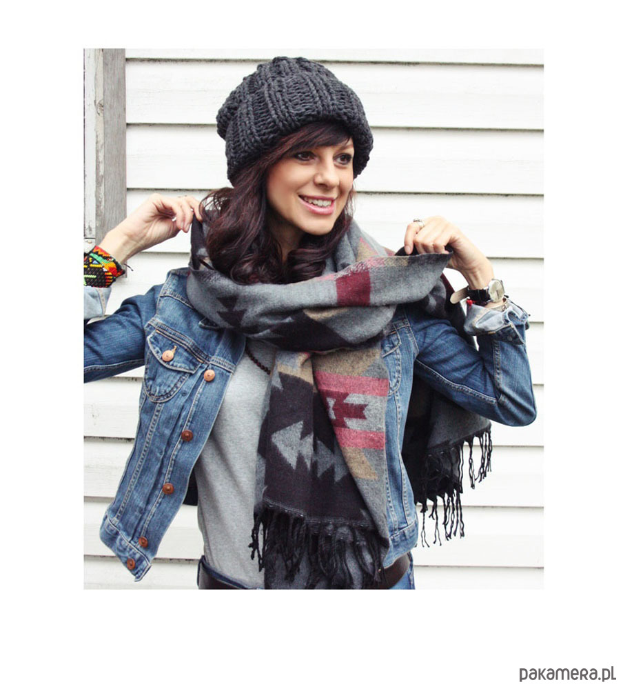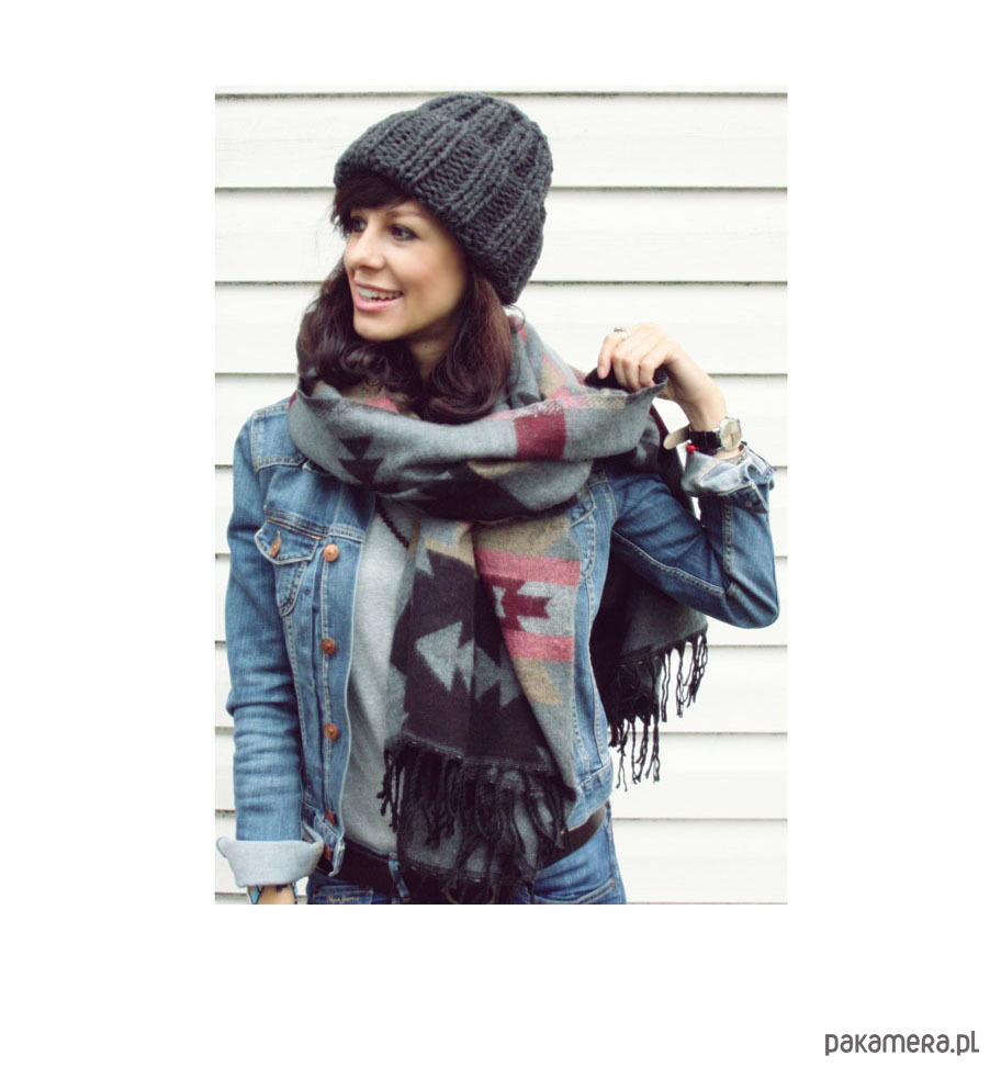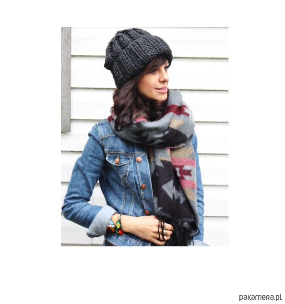 Ręcznie wykonana, gruba, "mięsista" czapka w kolorze grafitowym.
