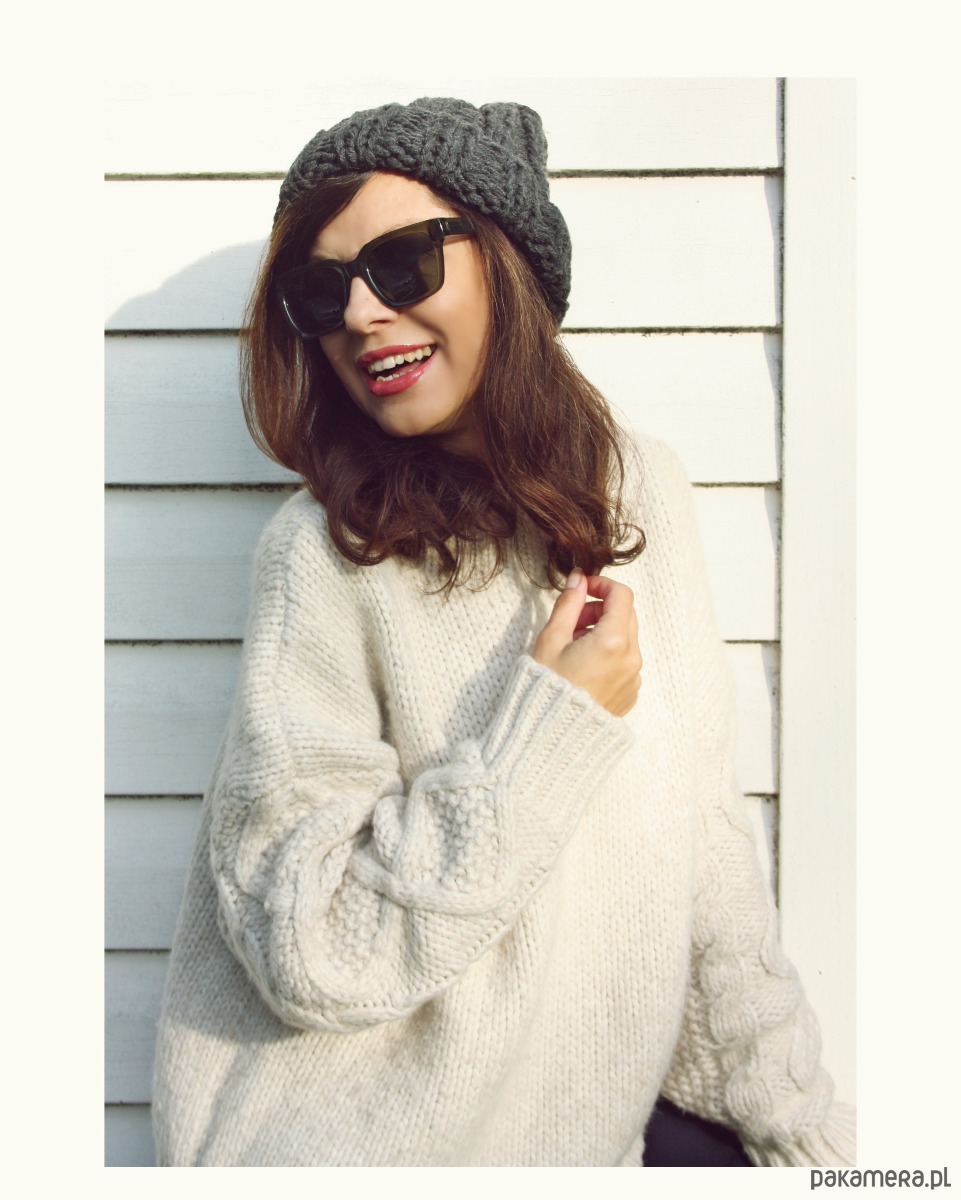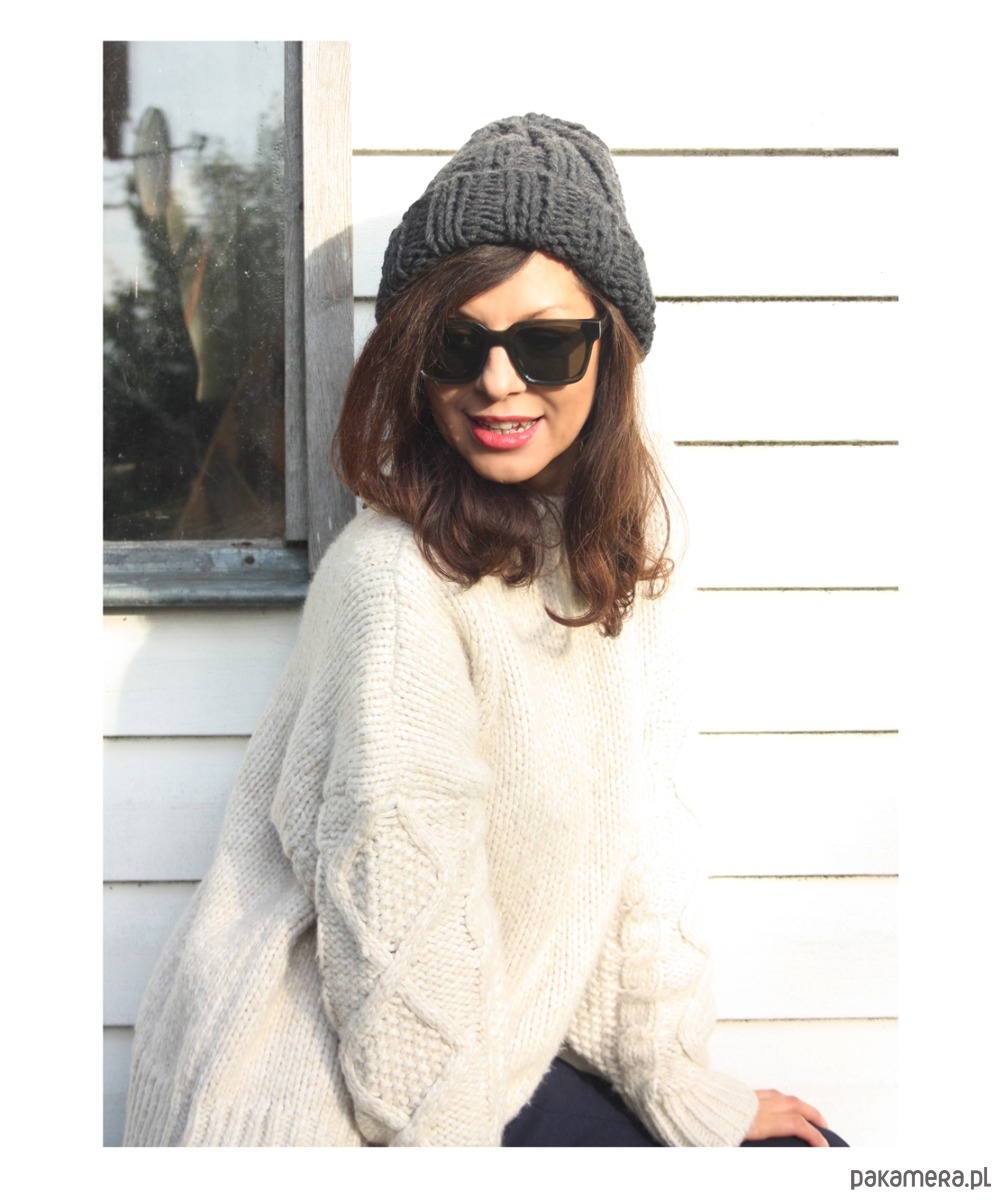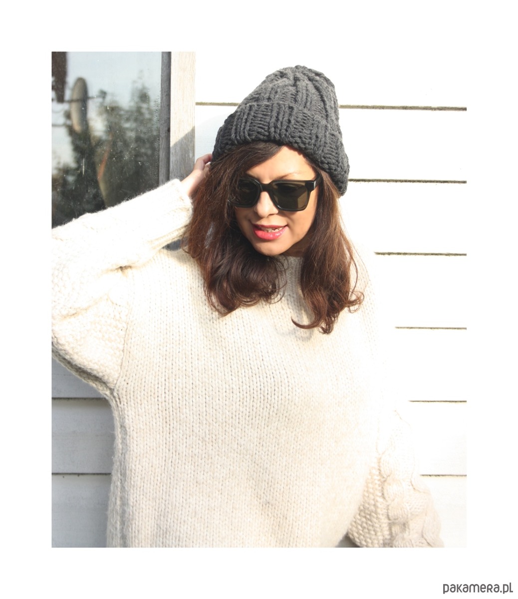 Ręcznie wykonana, gruba, "mięsista" czapka w kolorze grafitowym.