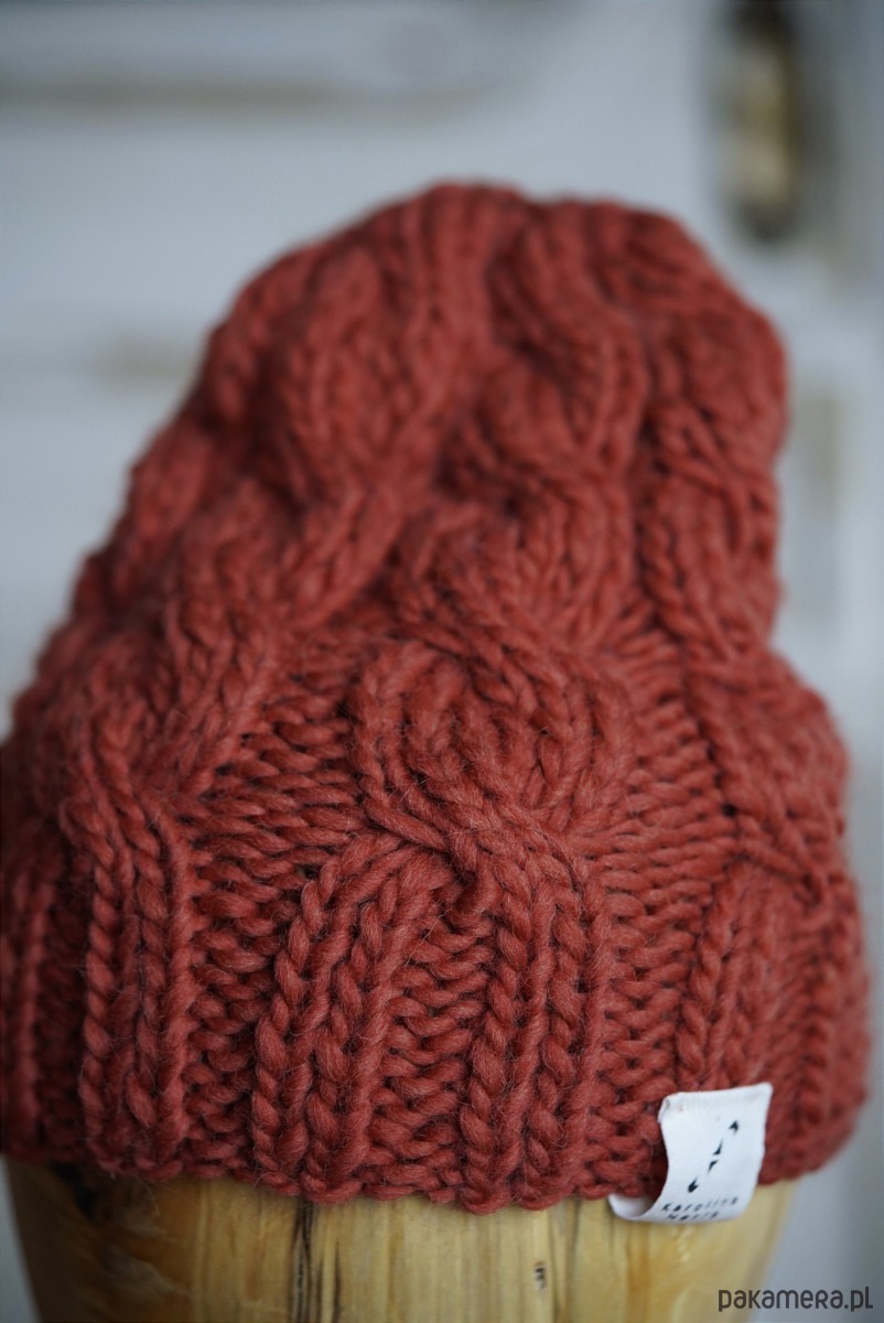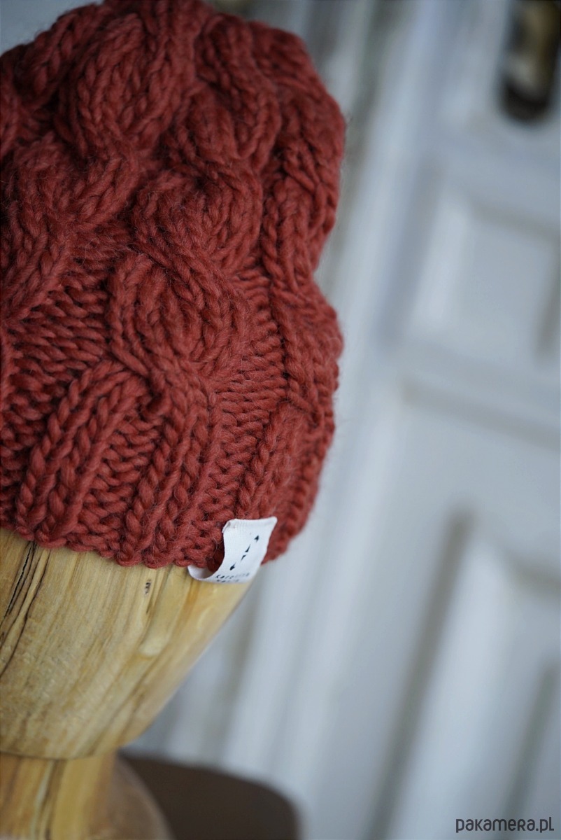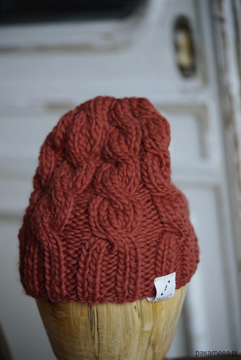 Wyjątkowo ciepła czapka w przepięknym ceglanym kolorze wykonana ręcznie na drutach z wełny owczej.