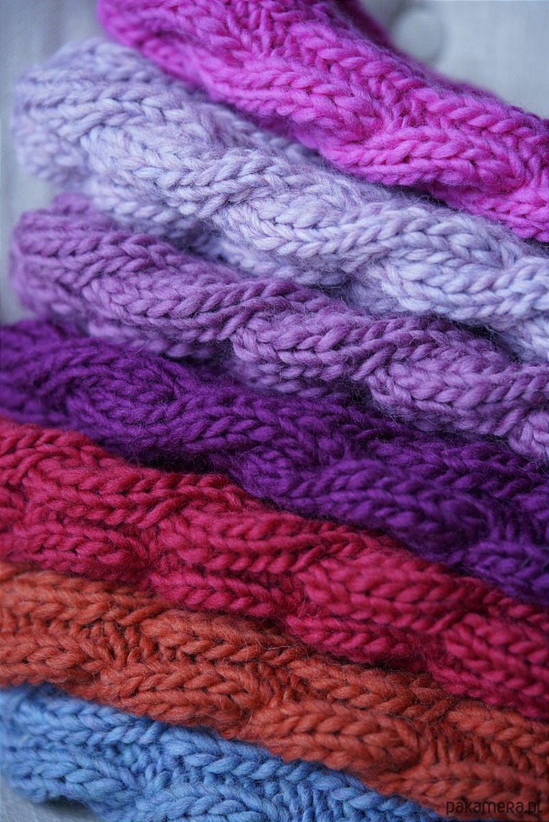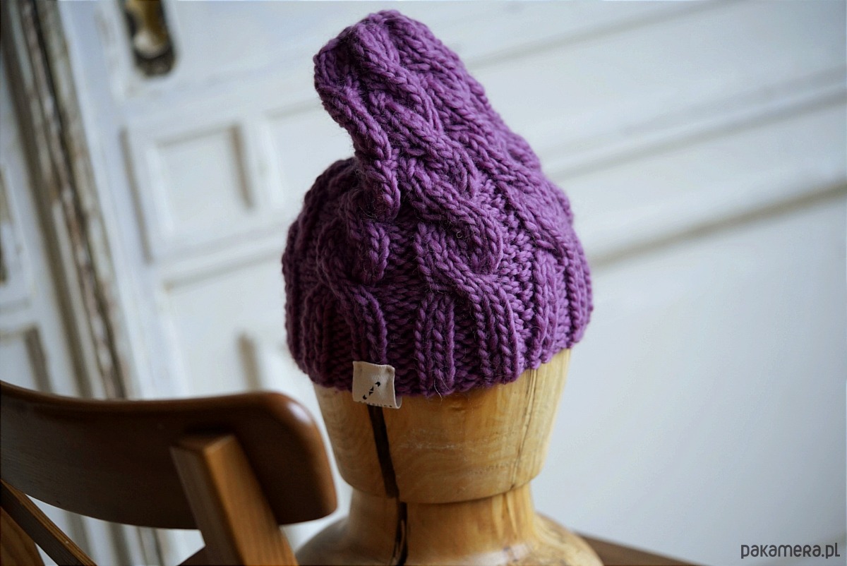 Wyjątkowo ciepła czapka we wrzosowym odcieniu fioletu wykonana ręcznie na drutach z wełny owczej.