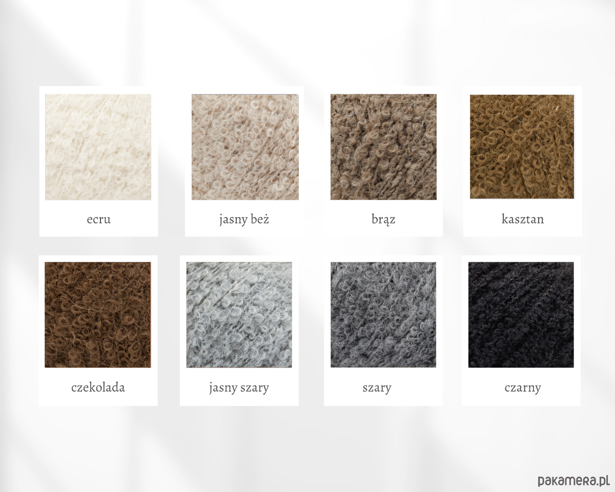 Czapka ze 100% włóczki alpaki z gatunku boucle, jej struktura w dotyku przypomina pluszowego misia,