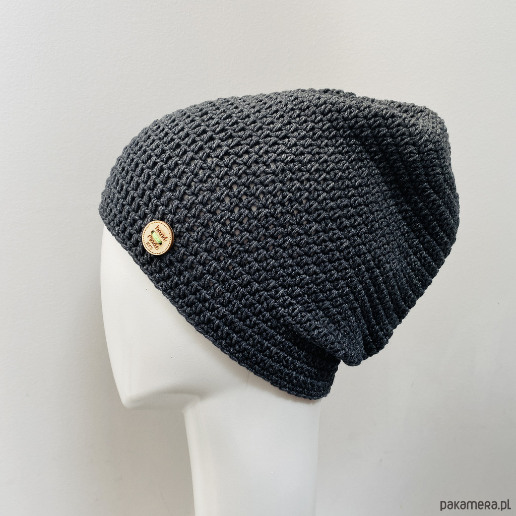 Czapka całoroczna przejściowa cienka bawełna s/m unisex antracyt