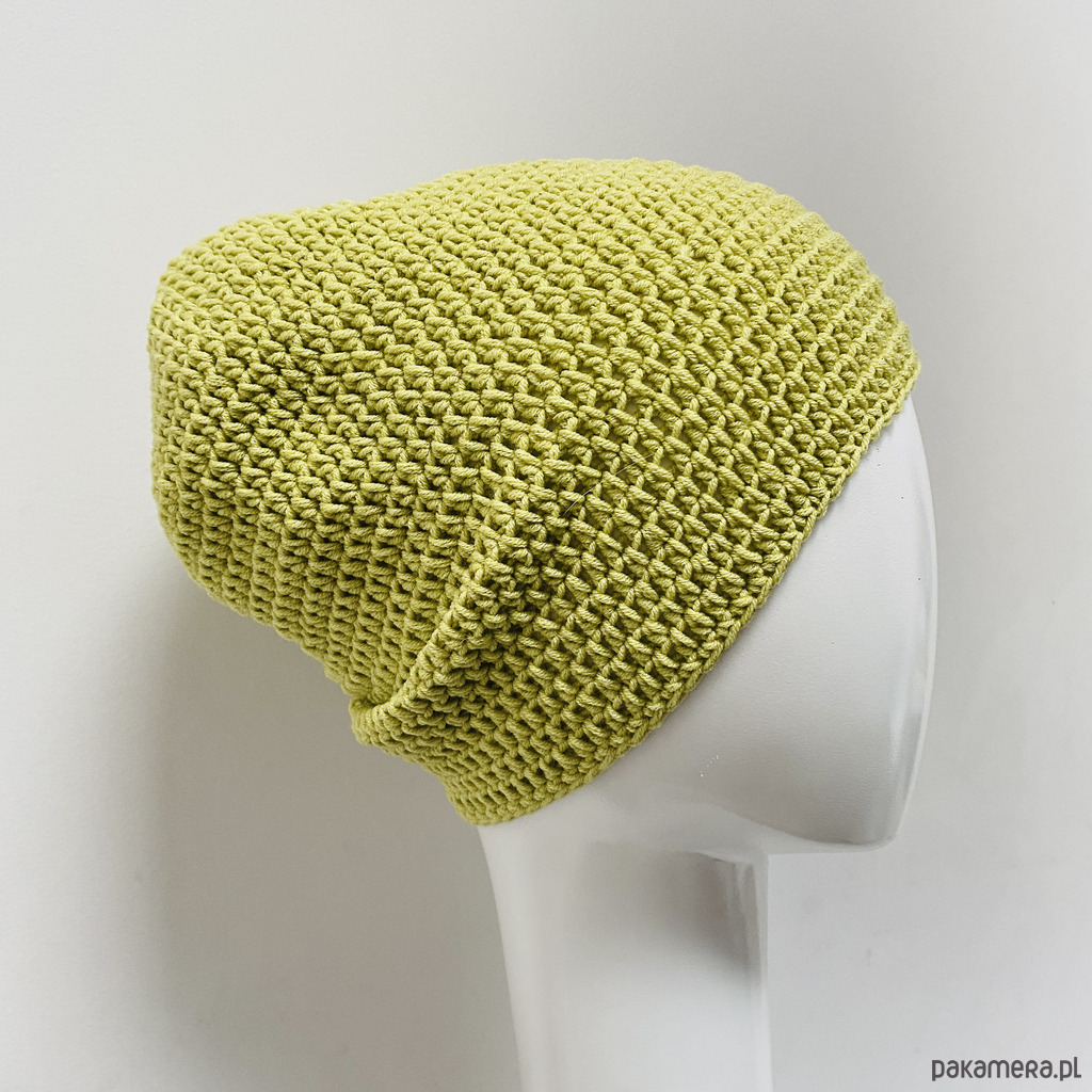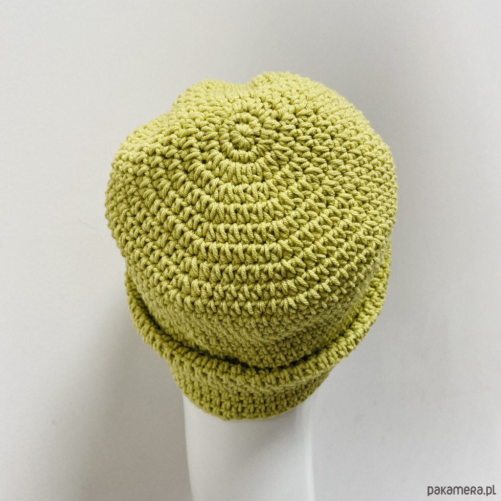 Czapkę przejściową wykonałam z wysokiej jakości włóczki bawełniano-akrylowej, która zapewnia wygodę noszenia przez cały dzień.