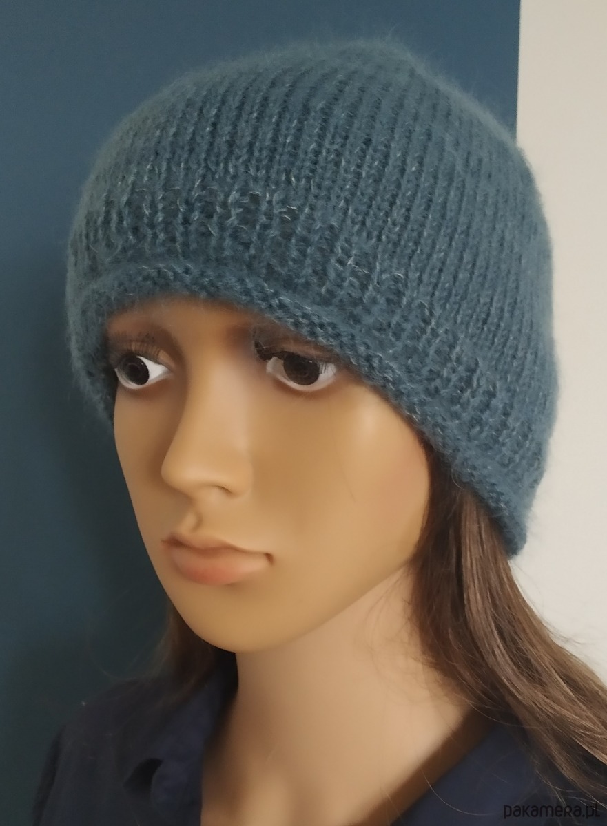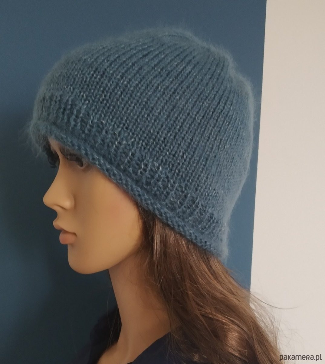 Czapka Cloche cienka przejściowa z moheru niebieska