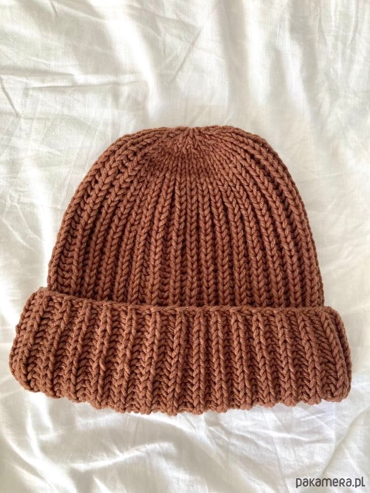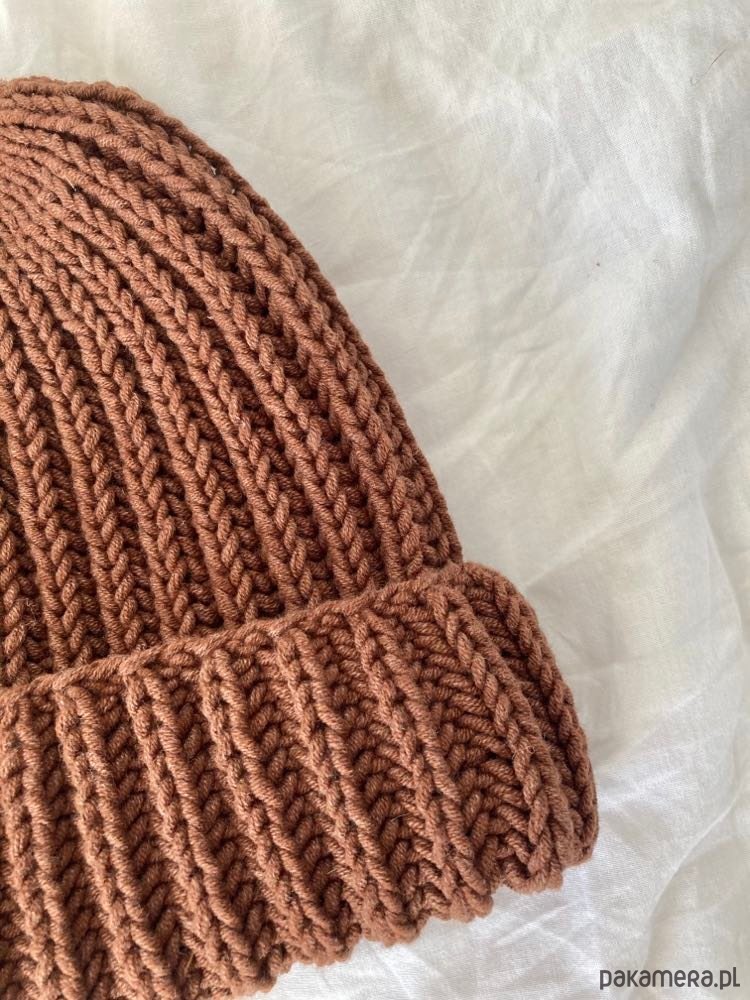 Czapka damska z włóczki YarnArt Jeans Plus w pięknym brązowym kolorze z dużą zawartością bawełny.