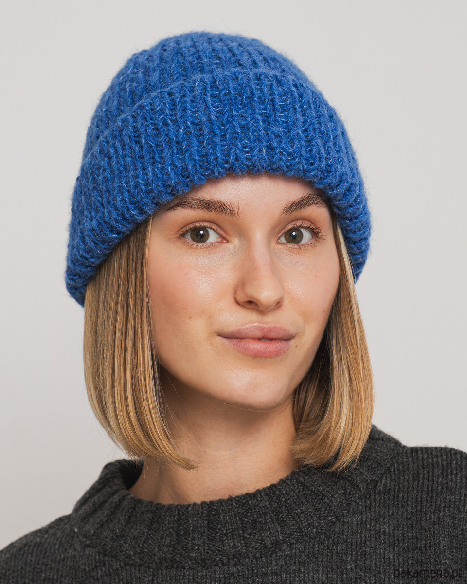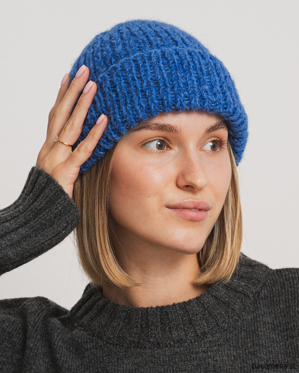 Czapka DARLA - kobaltowa / niebieska - Handmade - Merino, alpaka, jedwab