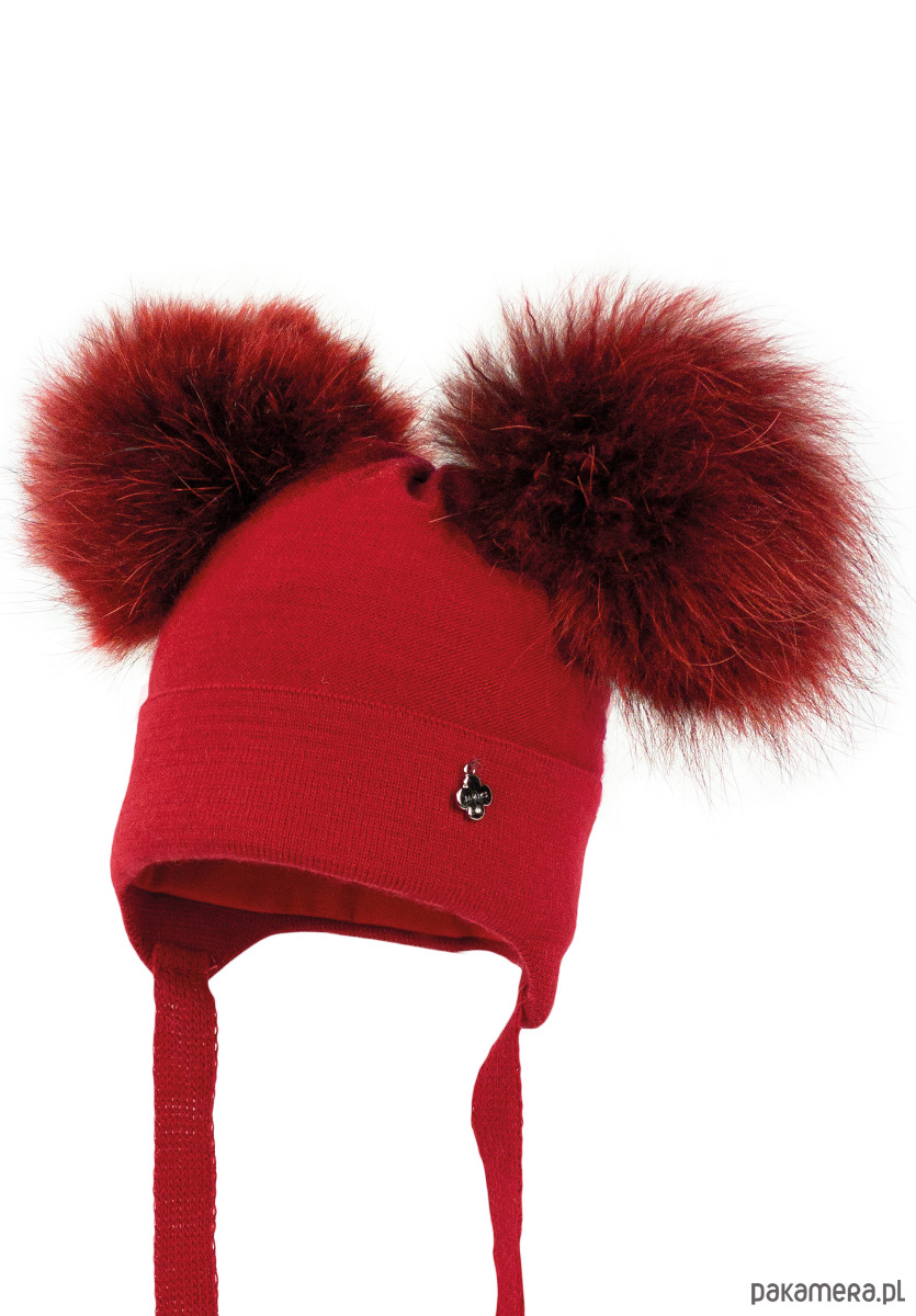 Czapka dla dziecka na zimę FELIPA z dwoma pomponami bordo
