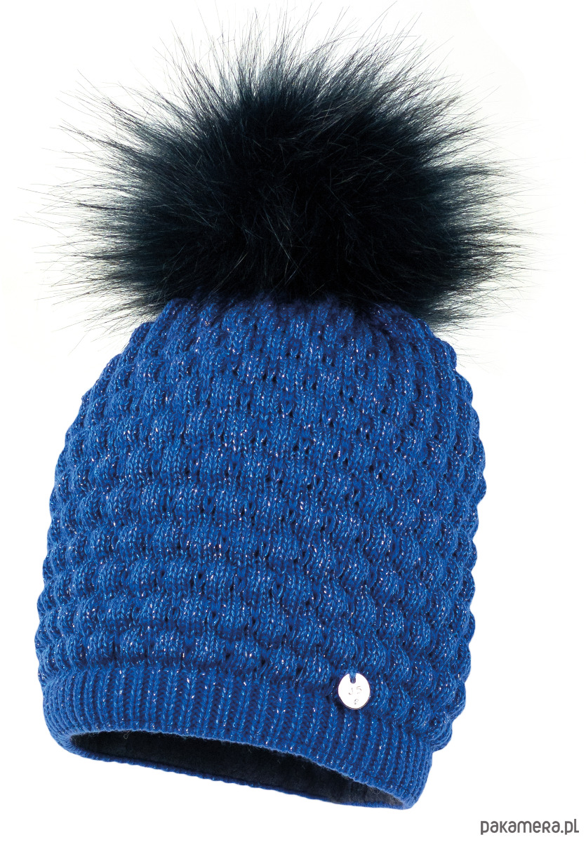Czapka dla dziewczynki na zimę KADLIN z pomponem modrak