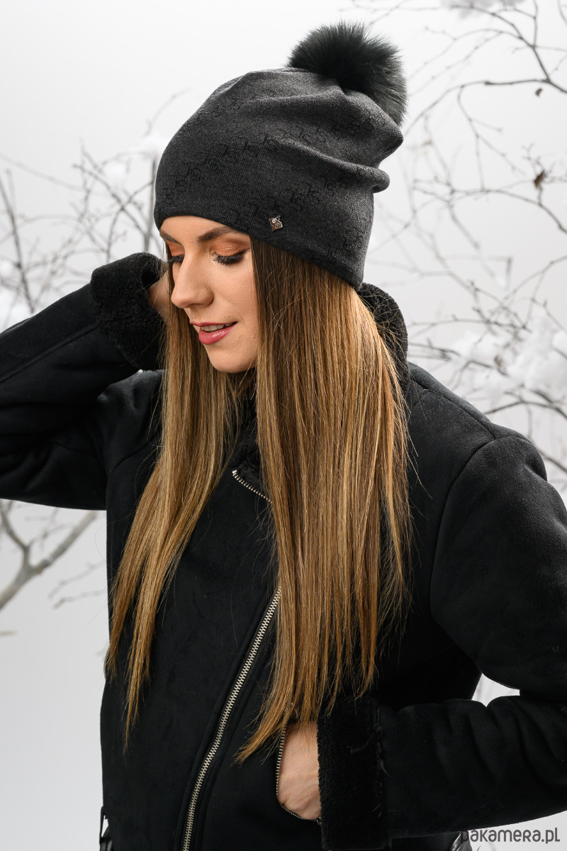 Zdobi ją pompon z futra sztucznego oraz subtelna zawieszka.