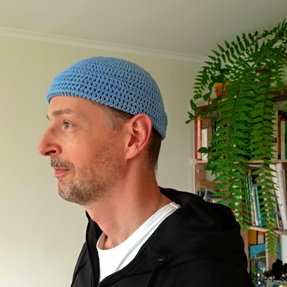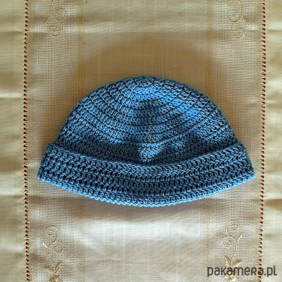 Czapka dokerka lub jak kto woli bandytka, a może leonka. Wykonana ręcznie na szydełku z mieszanki bawełny i akrylu. Super modny dodatek sezonu dodający nonszalancji i luzu każdej stylizacji. Piękny stonowany błękit będzie pasował do dżinsów, ale także do bardziej eleganckich stylizacji. To model unisex. Rozmiar M.