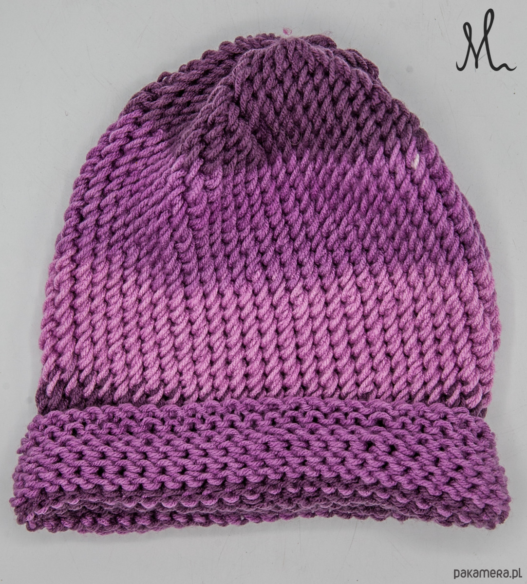Czapkę można nosić na dwa sposoby - jako "smerfetkę" albo naciągniętą mocniej na głowę z wywiniętym w rulon mankietem.
