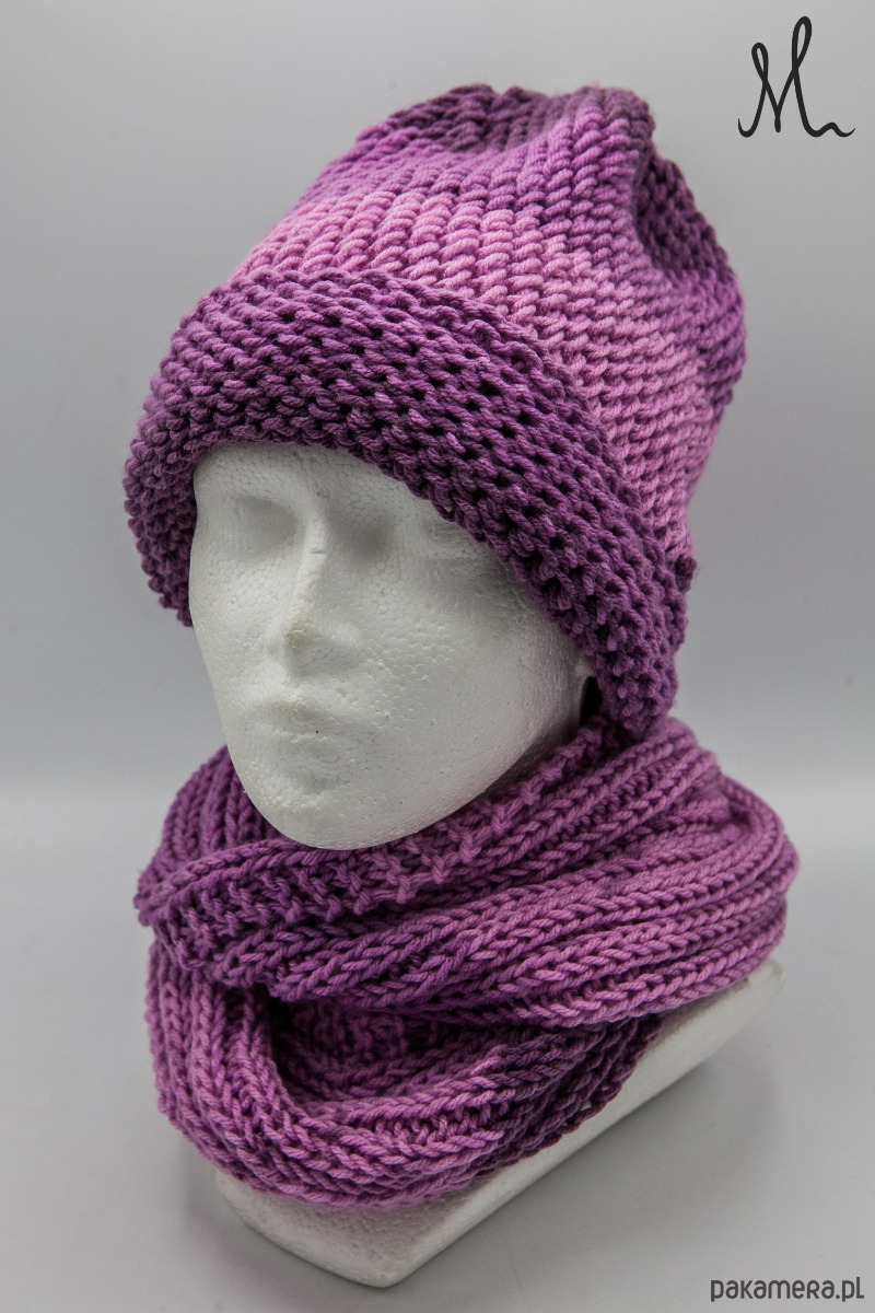 Na moim profilu możesz dokupić Fiołkowy Komin otulacz na szyję wykonany z tej samej włóczki.