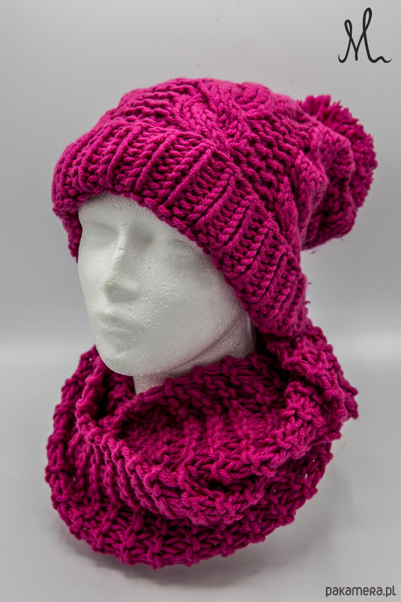 Na moim profilu możesz dokupić do kompletu Komin Fuksja na szyję wykonany z tej samej włóczki.