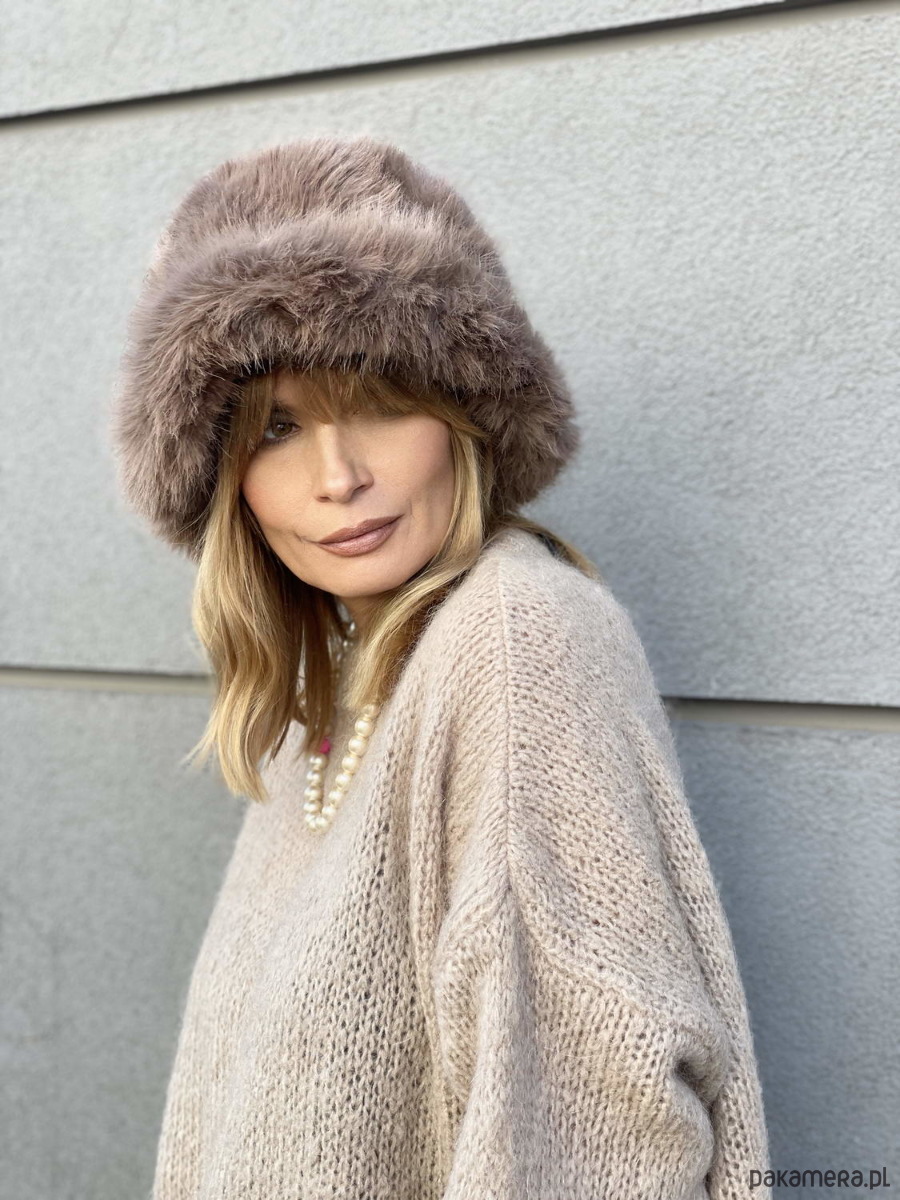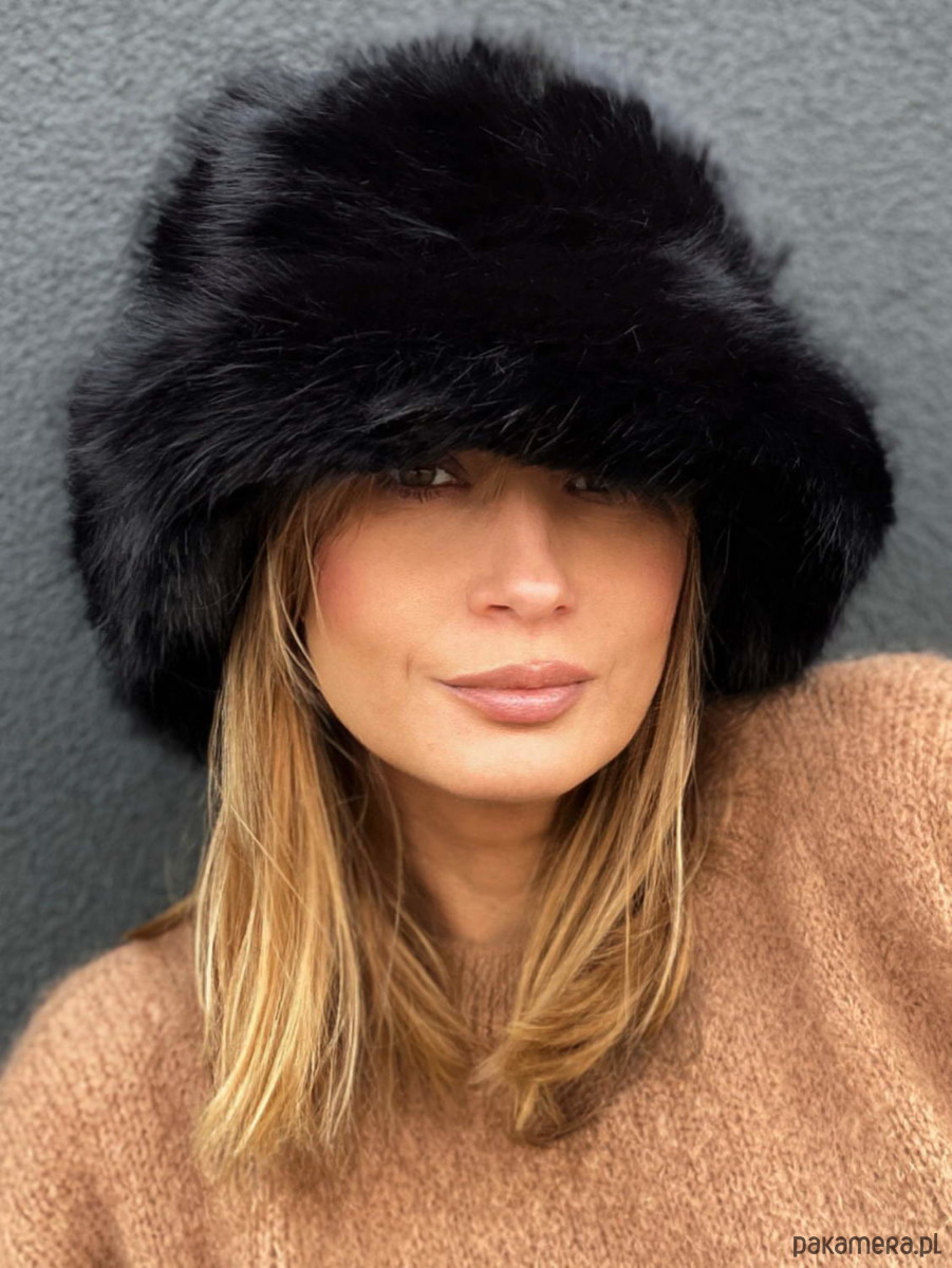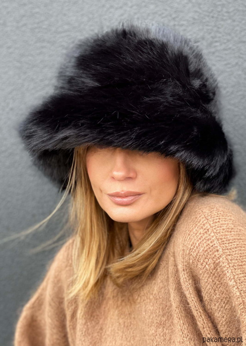 Niezwykle efektowna zimowa futrzana czapka typu "bucket hat" uszyta z mięciutkiego i bardzo przyjemnego w dotyku sztucznego futra w trzech odcieniach - krem, ciemna kawa z mlekiem i czerń
