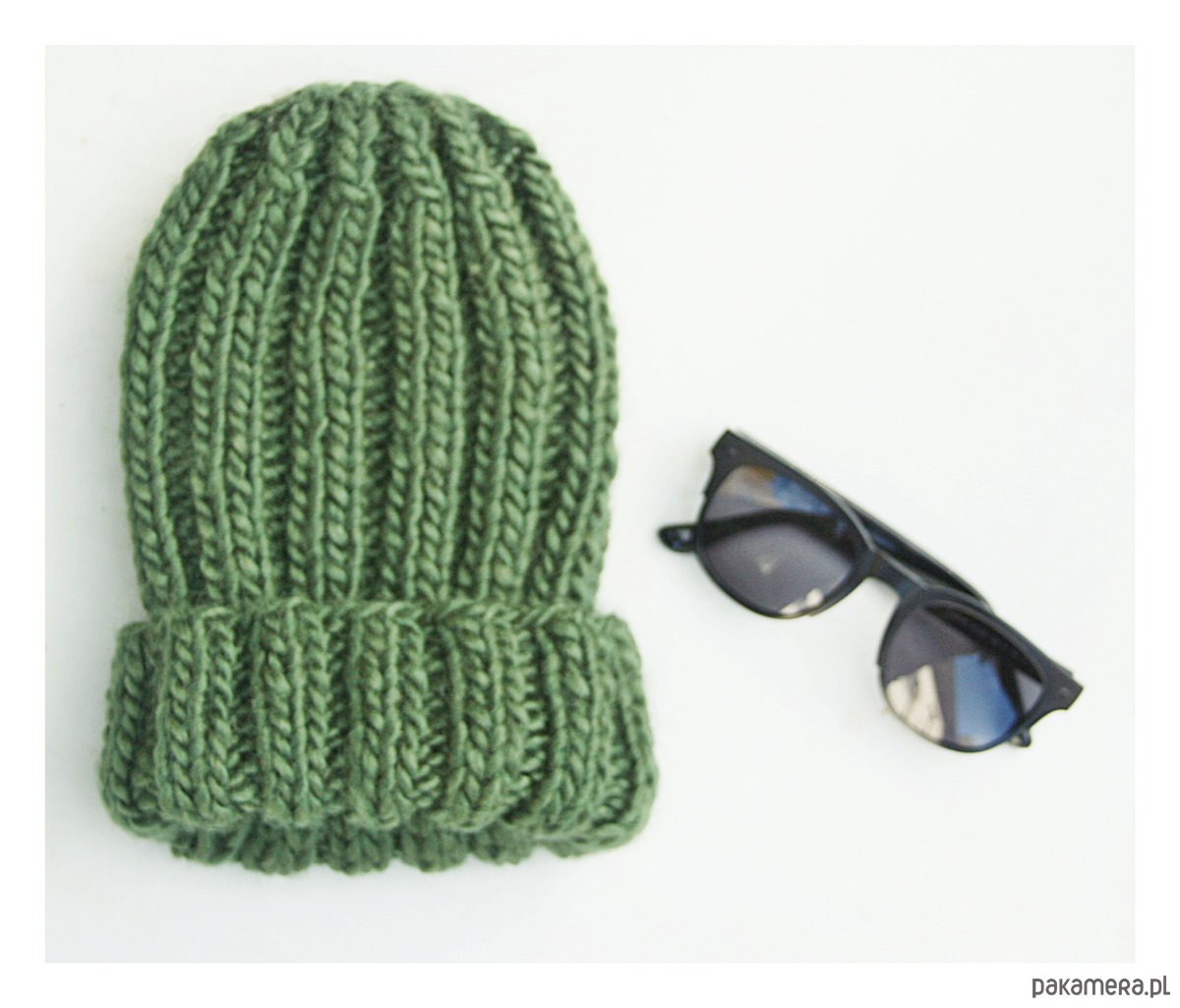 Ręcznie wykonana czapka w kolorze pięknej, leśnej zieleni.