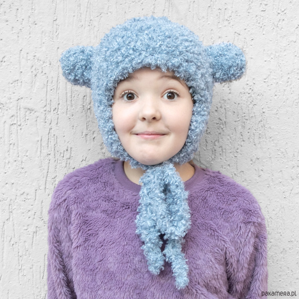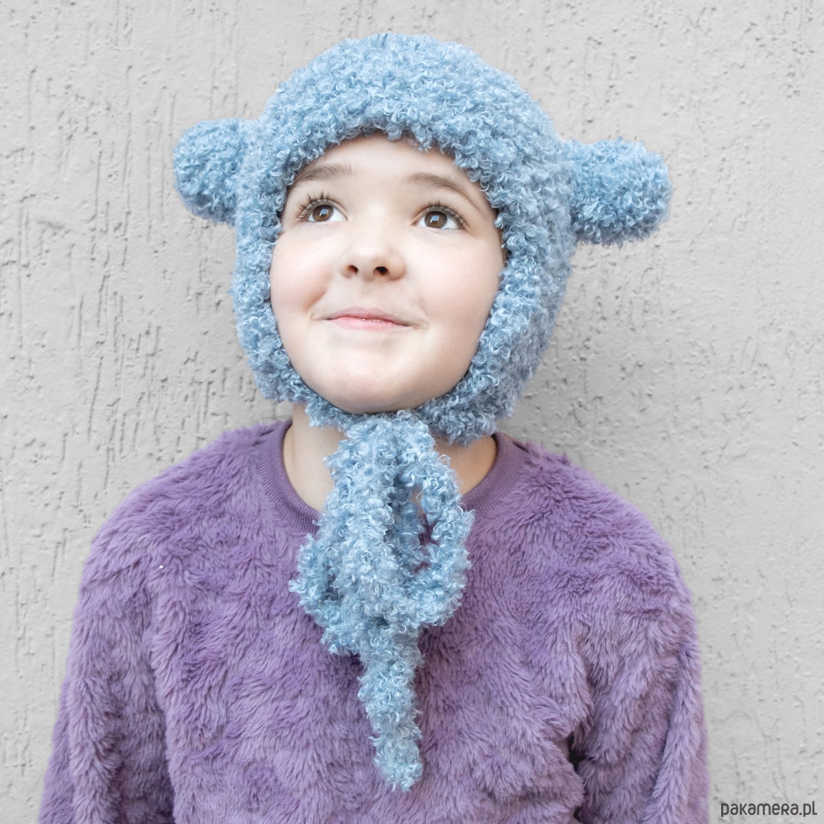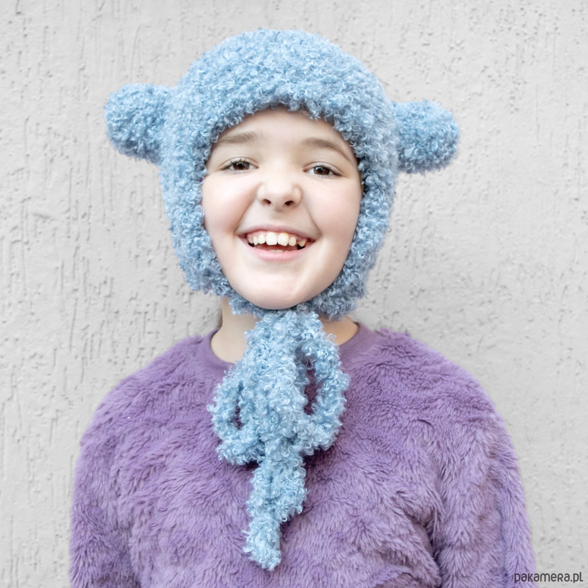 Czapka ręcznie robiona z bardzo miłej w dotyku włóczki. Niebieski kolor, mały ufoludek z dwoma antenami. Z 100% poliestrowej włóczki