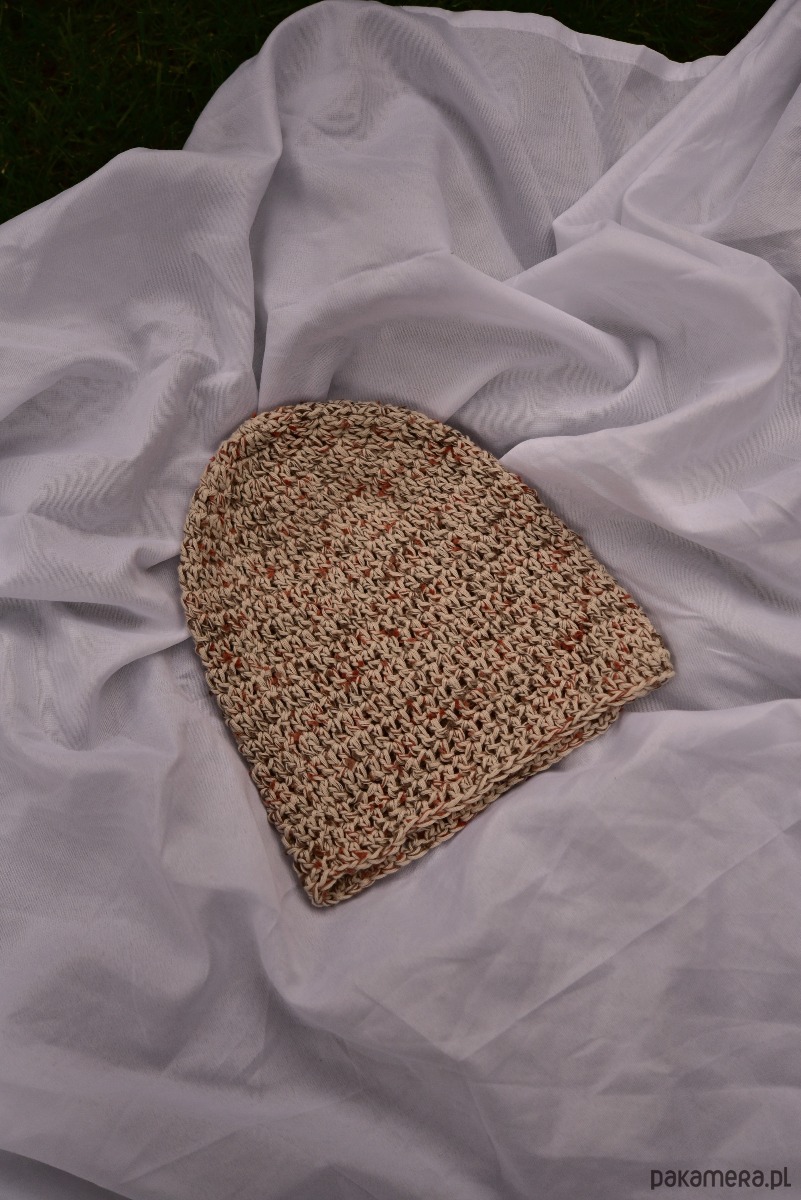 Czapka beżowa z kolorowymi kropkami - jesienna, cienka 🤎🎨