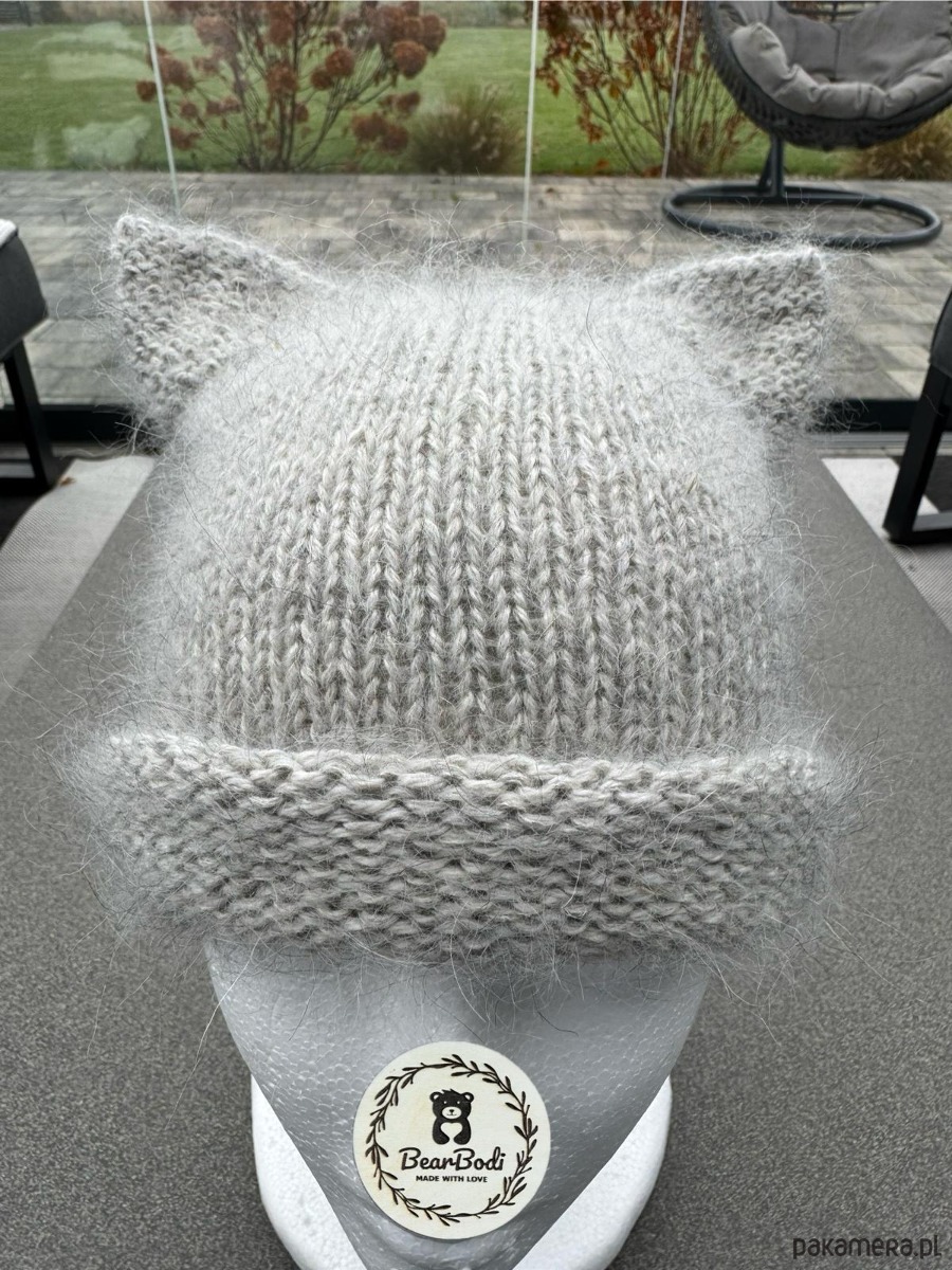 Nowość od BearBodi! ✨ Ręcznie robiona czapka z wełny z jedwabiem – styl i ciepło na zimę. Każda sztuka tworzona z pasją! Ten kociak dedykowany jest dla małych i dużych 🐻