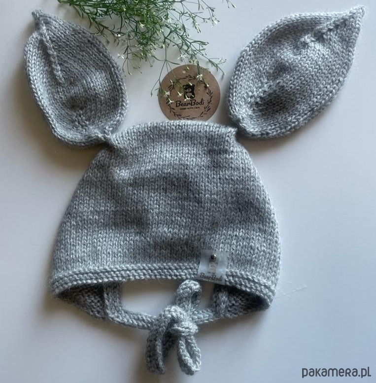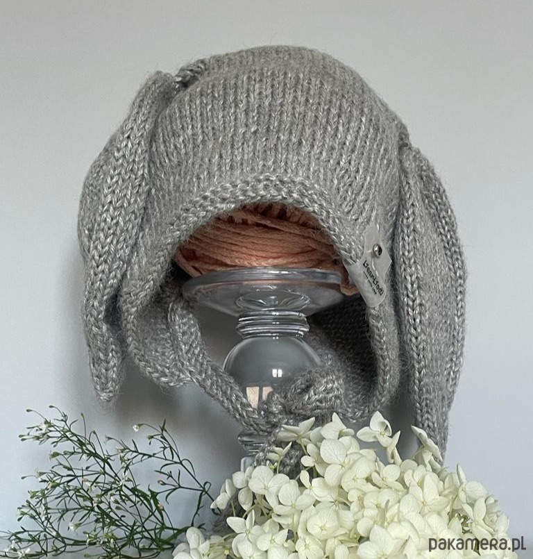 Sprzedam czapkę króliczek na maluszka 3-6 miesięcy, nowa ręcznie robiona. Wełna merino mięciutka, milutka.