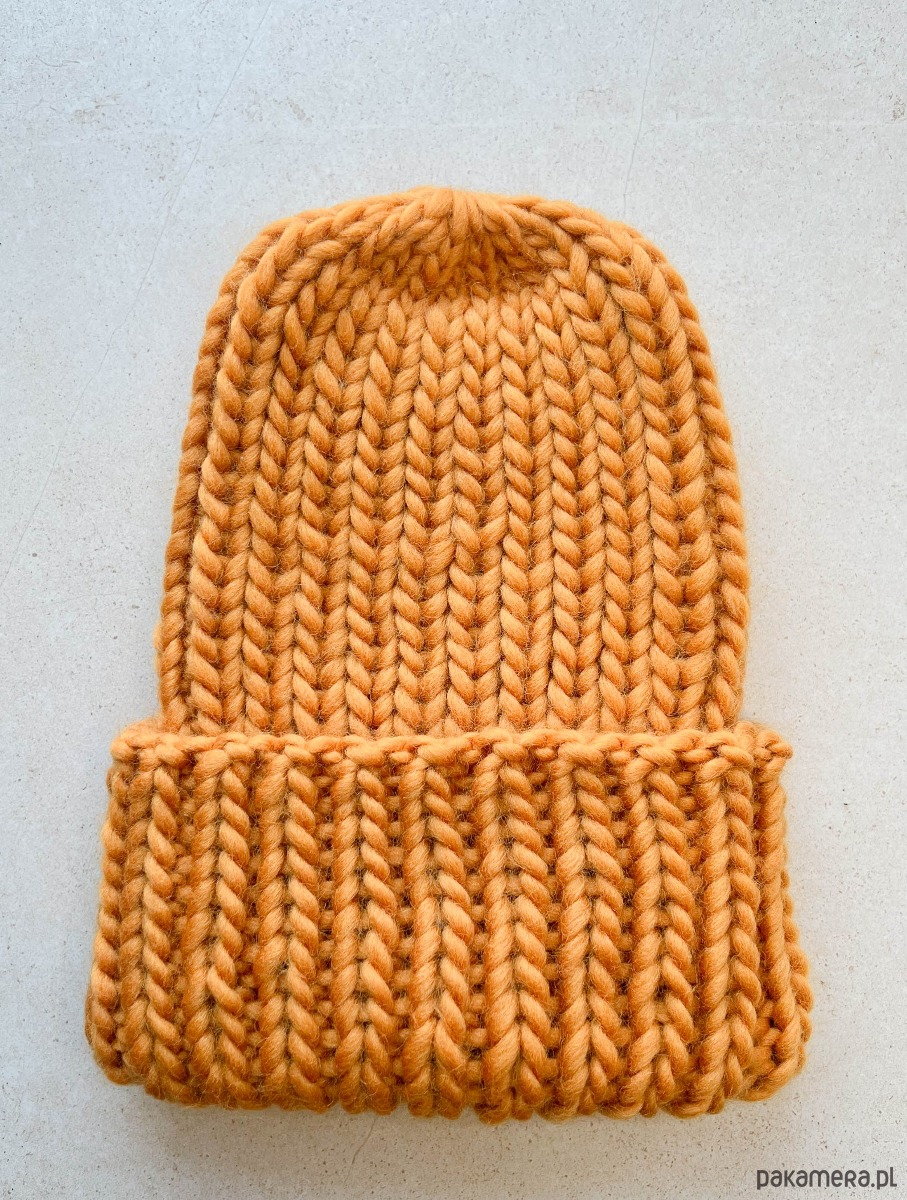 Rozmiar uniwersalny, czapka jest wykonana wzorem ściągaczowym i dopasowuje się idealnie do głowy. Długość ok. 34 cm