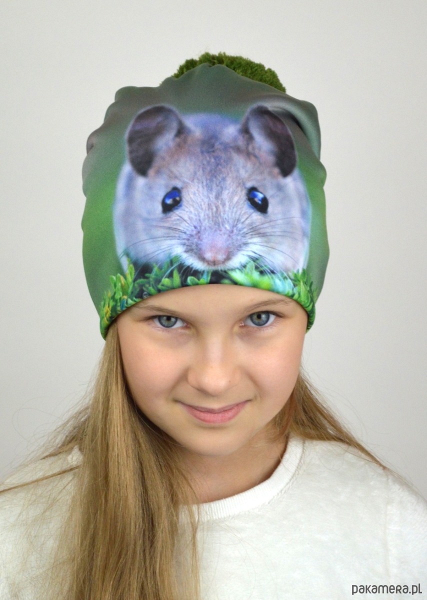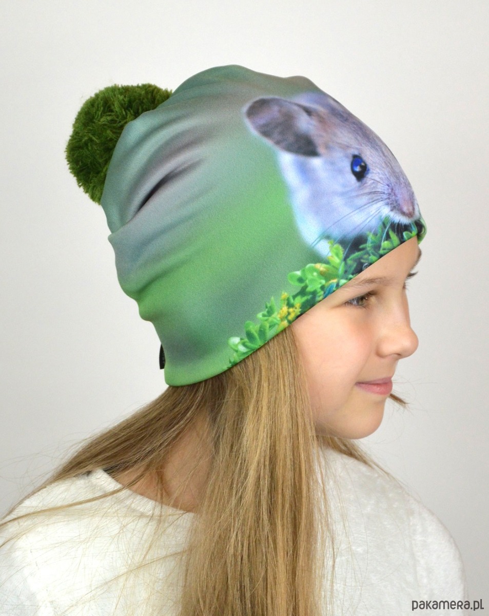 Czapka z dzianinowym pomponem z elastycznego materiału z nadrukiem 100% poliester, od środka podszyta ciepłym micropolarem.