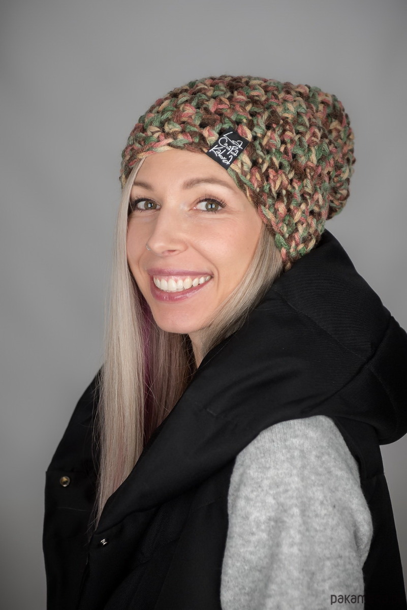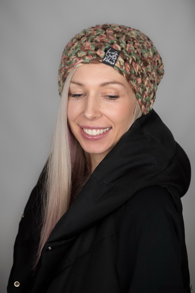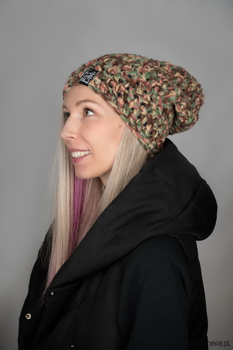Wielokolorowa czapka MONO jest ręcznie robiona, z wysokiej jakości włóczki, co czyni ją miękką i miłą w dotyku. Czapka jest długa, mięsista i ażurowa. Gruby luźny splot sprawia, że czapka świetnie się układa i oddycha.