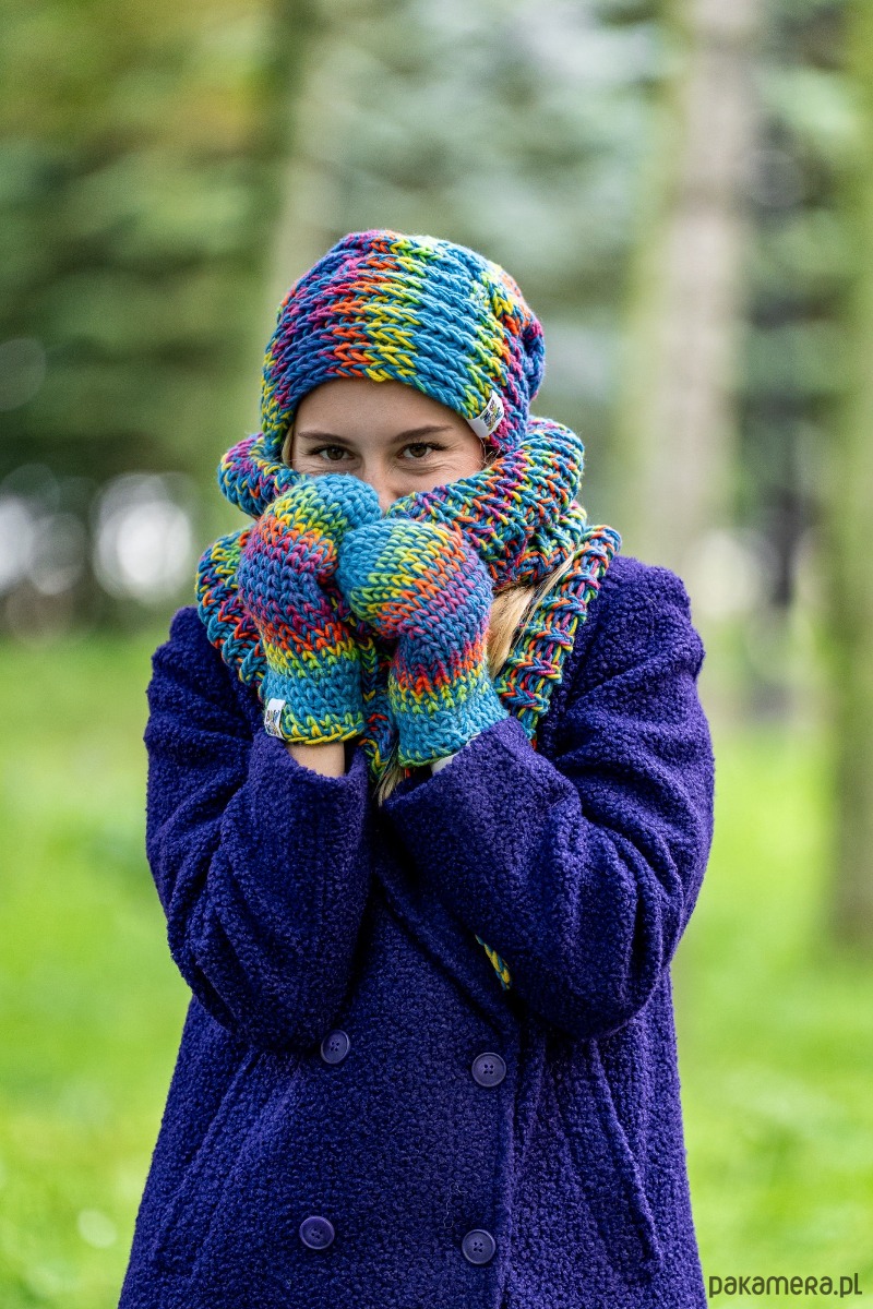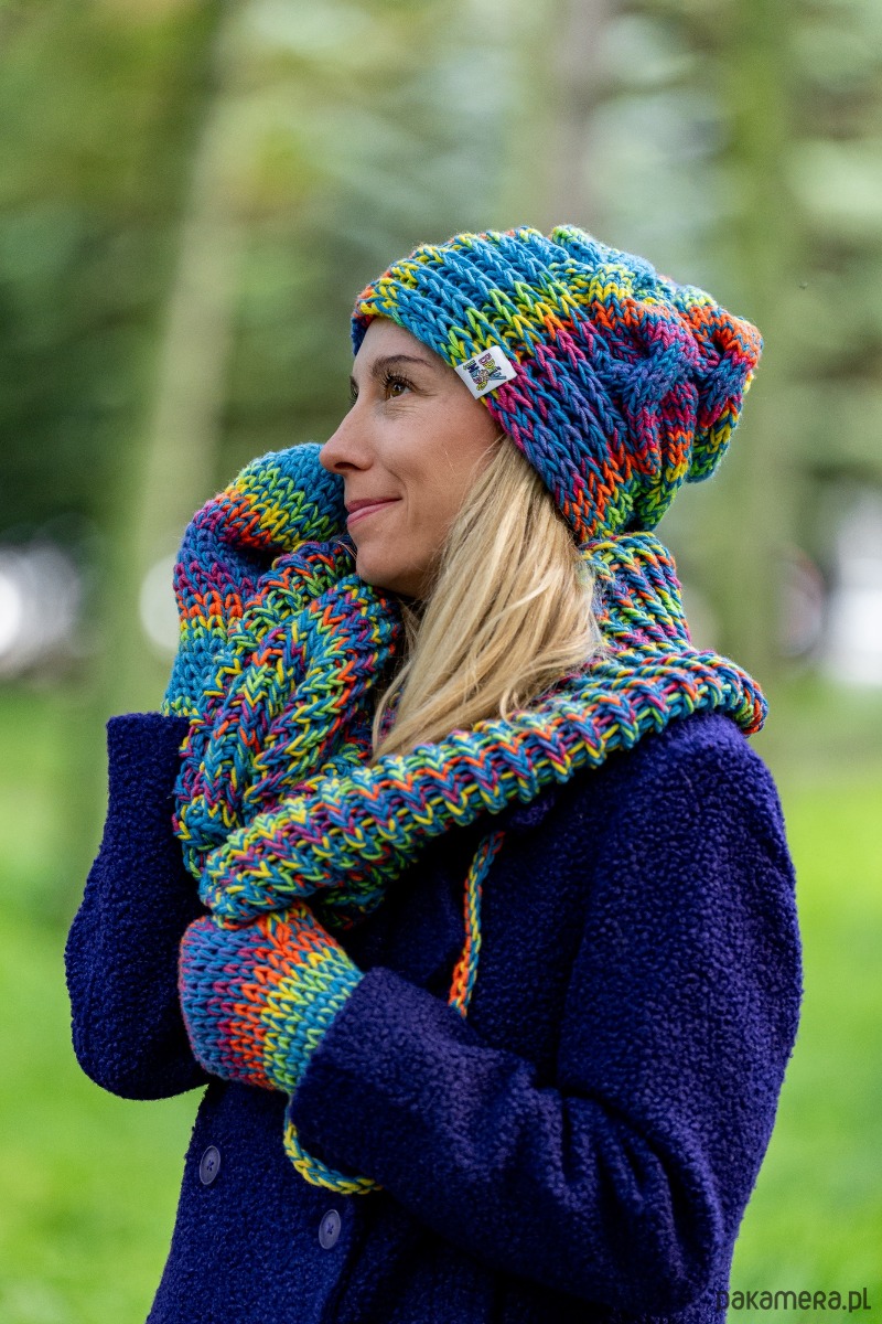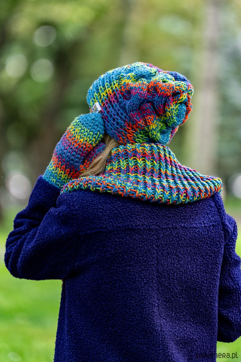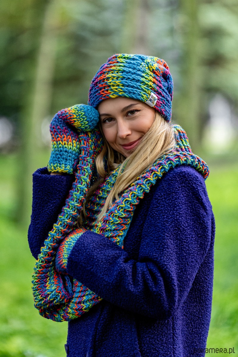 Czapka MERINO 50% nieugniatająca włosów Tęcza Błękit THIS IS IT