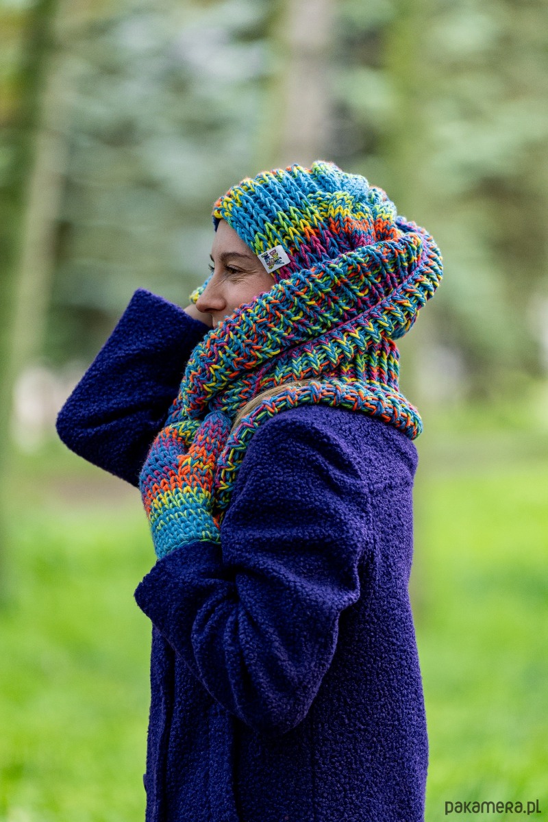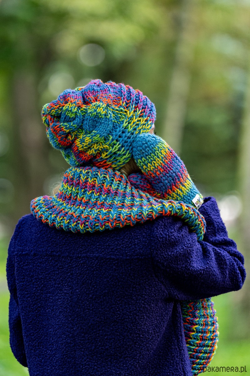 Ręcznie robiona przez poznańskie Seniorki z mieszanki 50% merino i 50% akrylu, jest miękka, ciepła i oddychająca – bez pompona, bez polaru, za to z charakterem. Luźna i lekko zwisająca, ma ten nonszalancki vibe, który sprawia, że wygląda dobrze zarówno na spacerze po mieście, jak i podczas weekendowej wyprawy za miasto.