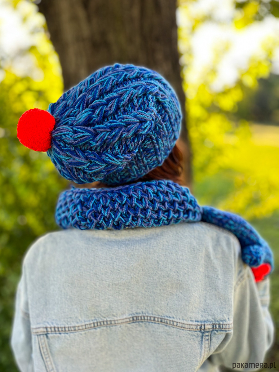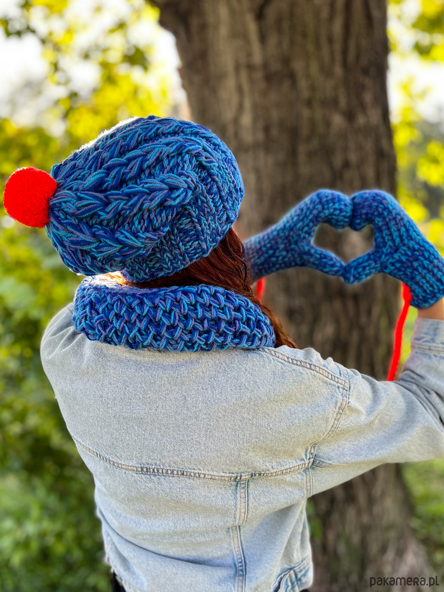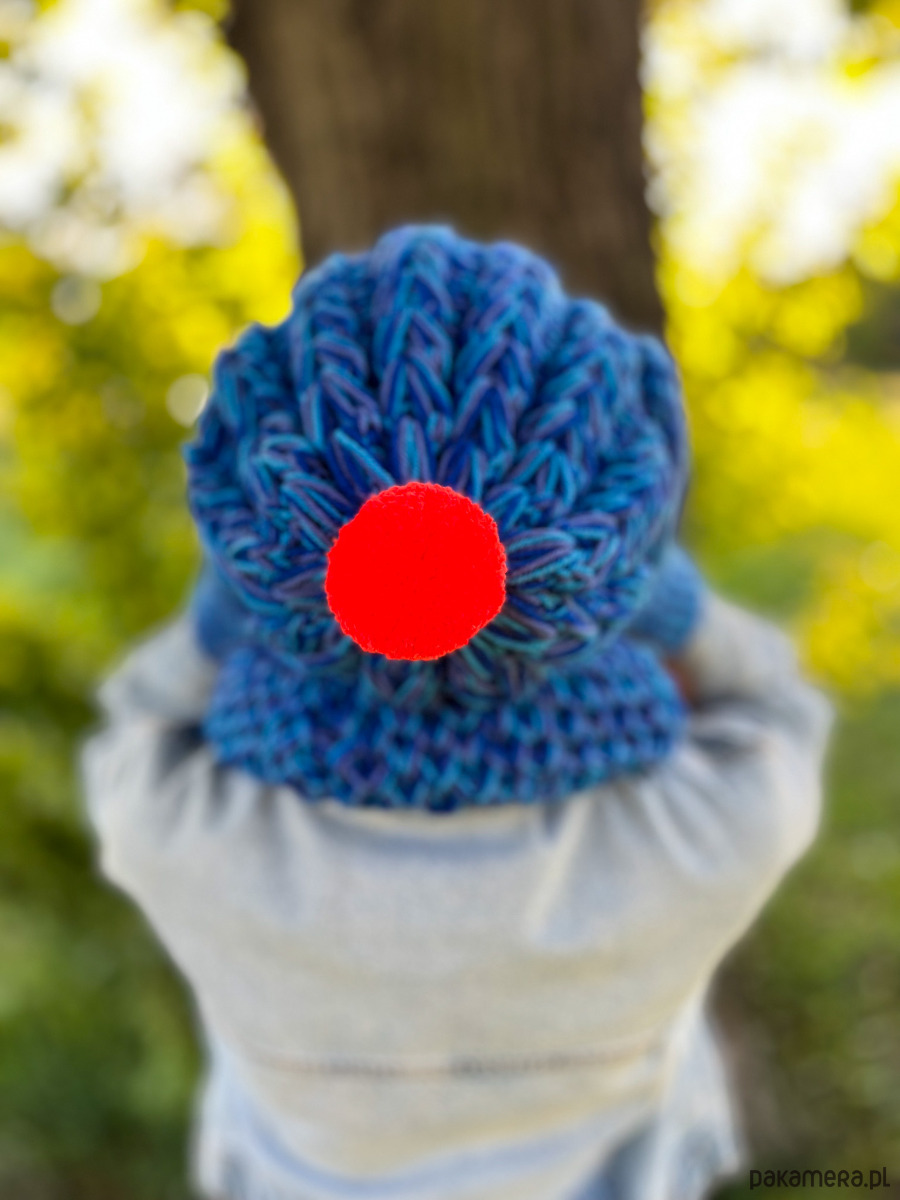 Ręcznie dziergana przez poznańskie Seniorki z mieszanki 66% merino i 34% akrylu, w środku podszyta polarem, otula głowę ciepłem jak ulubiony koc w grudniowy wieczór. Zwisający fason dodaje jej luzu, a pompon robi robotę – trochę żartu, trochę stylu.