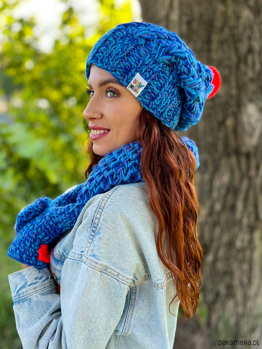 Czapka MERINO 66% ,,Niebieskości SMILE