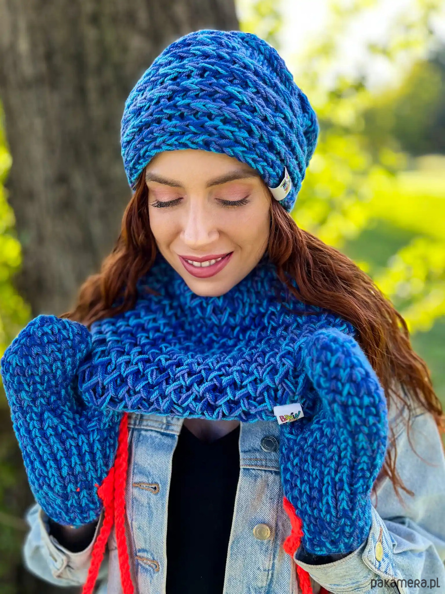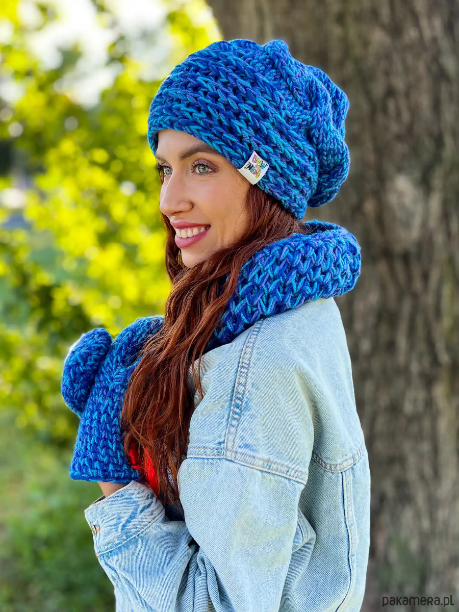 Czapka MERINO 66% nieugniatająca włosów ,,Niebieskości THIS IS IT