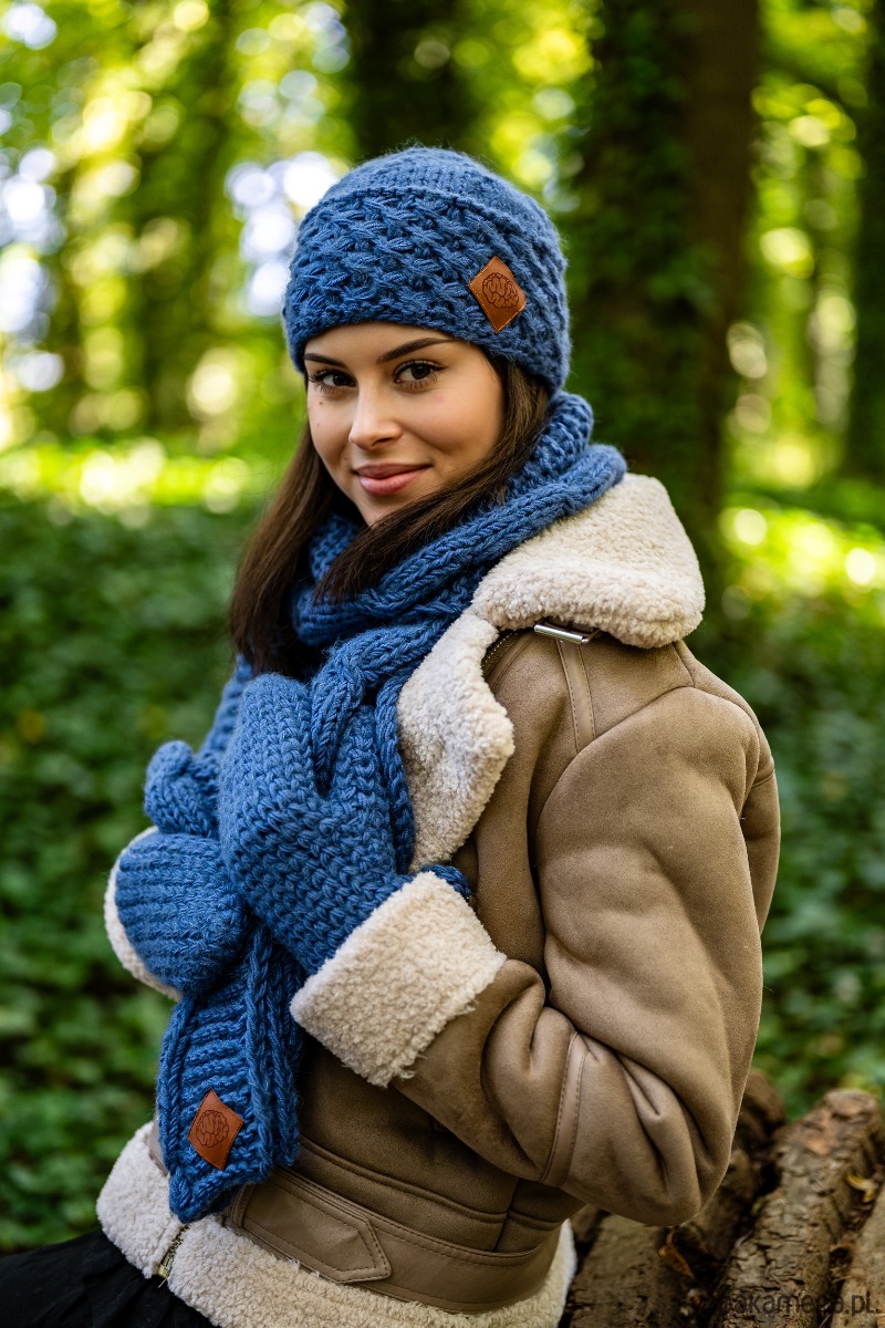 Czapka MERINO Hope Ciemny niebieski + podszewka JEDWAB