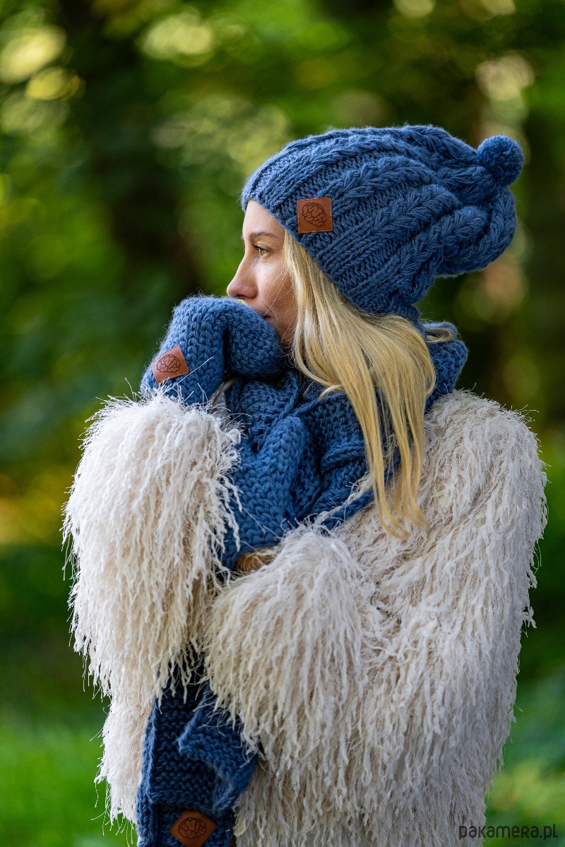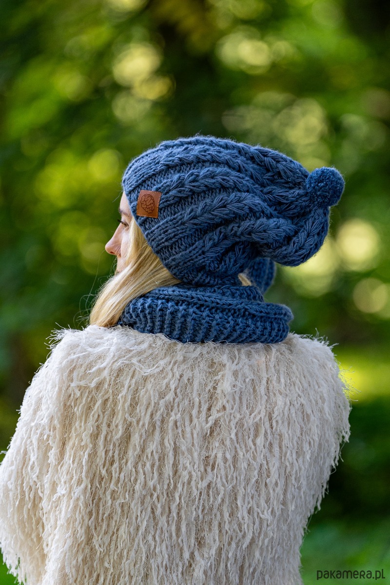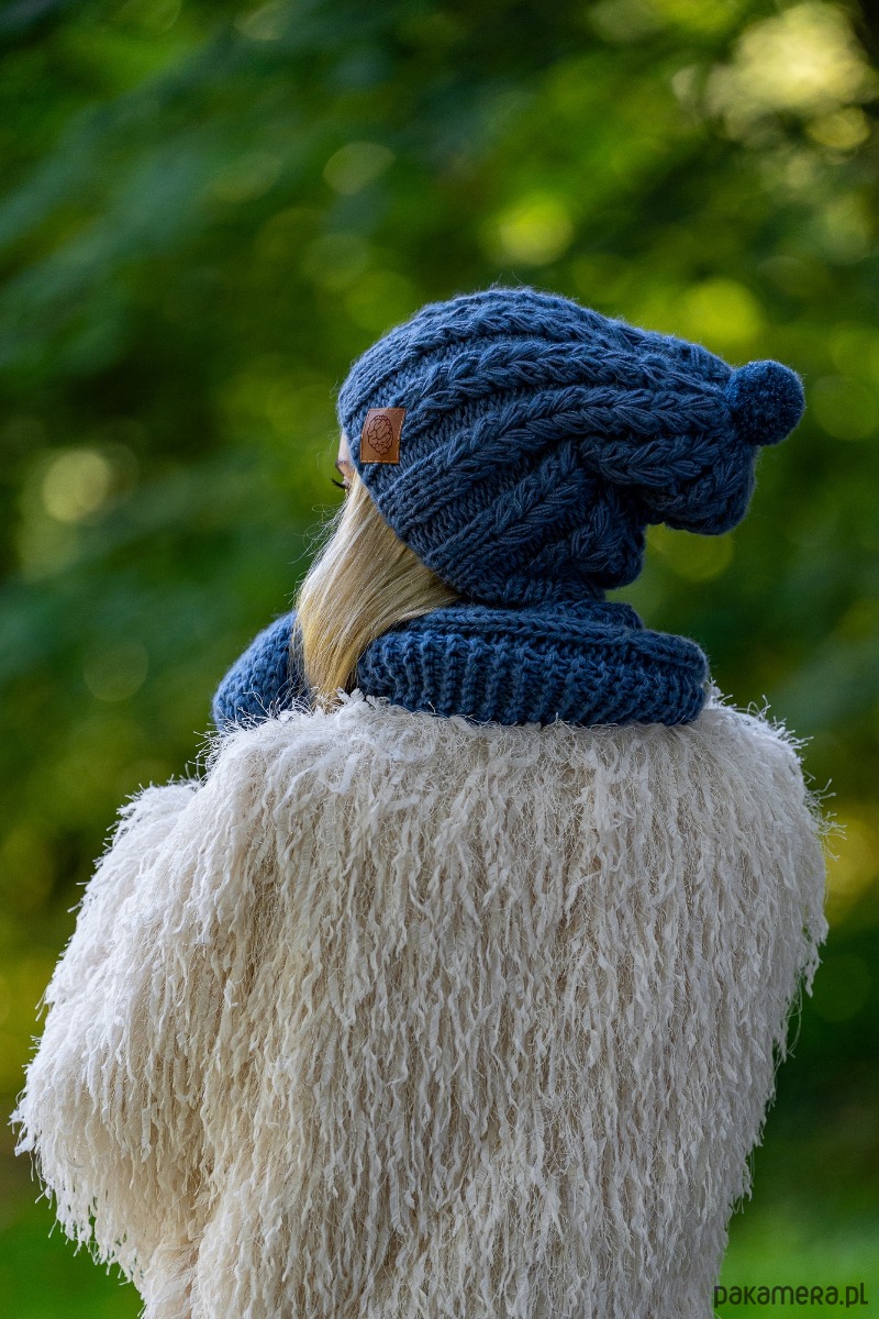 Czapka ręcznie dziergana przez poznańskie Seniorki z luksusowej mieszanki 86% merino, 11% alpaki i 3% jedwabiu, a w środku podszyta jedwabiem – miękka, ciepła i przyjemna dla skóry, nawet przy największym mrozie. Zwisający fason nadaje jej lekko nonszalancki charakter, a mały pomponik dodaje szczyptę humoru i stylu.