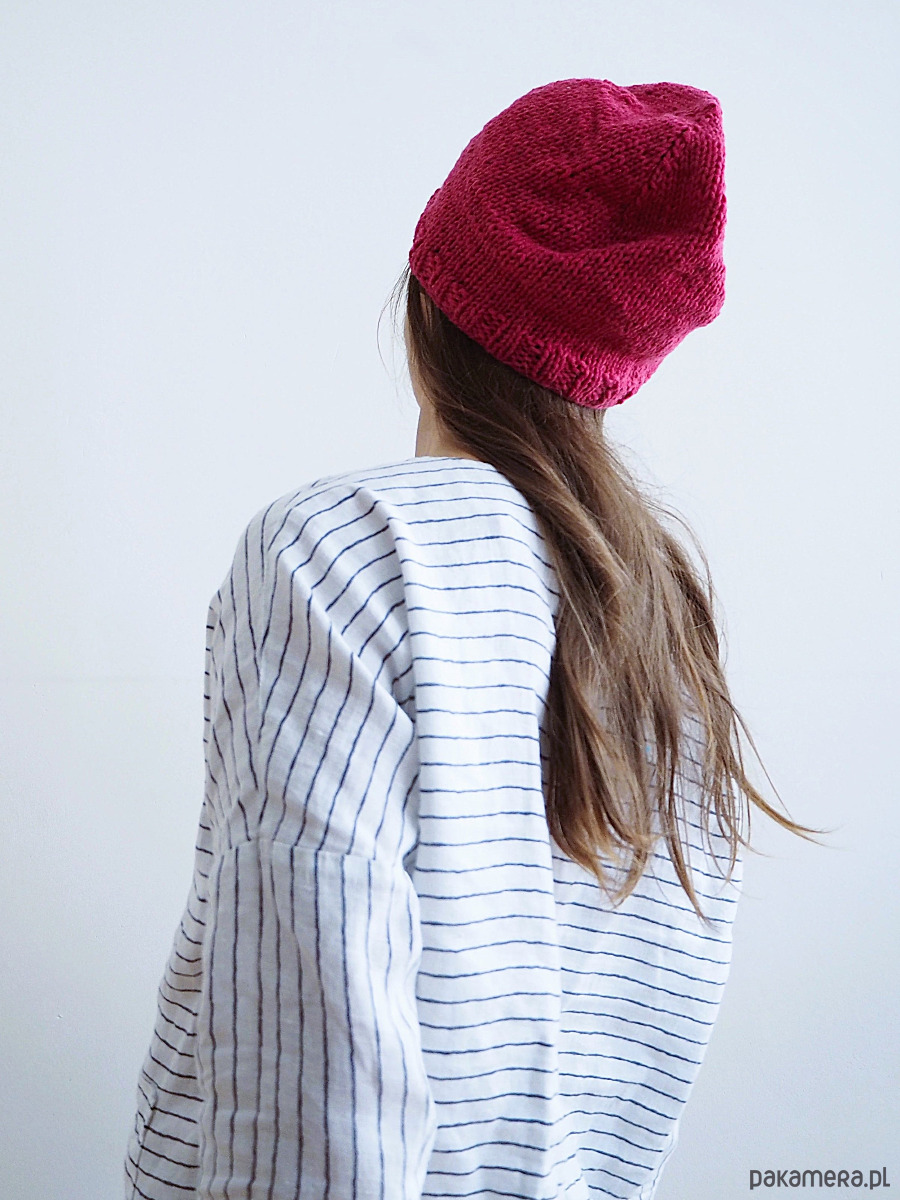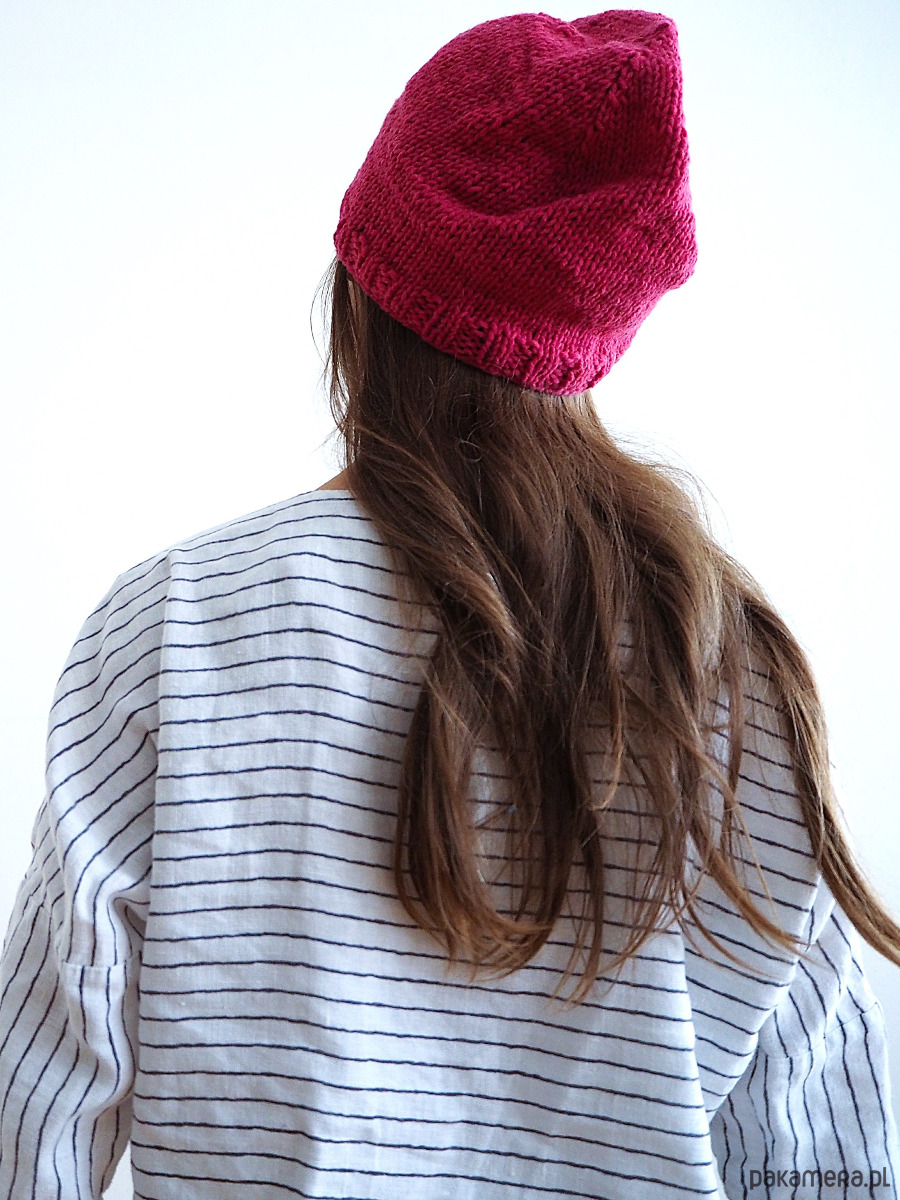 Czapka jest wykonana ręcznie na drutach z włoskiej włóczki Borgo de pazzi amore 115.