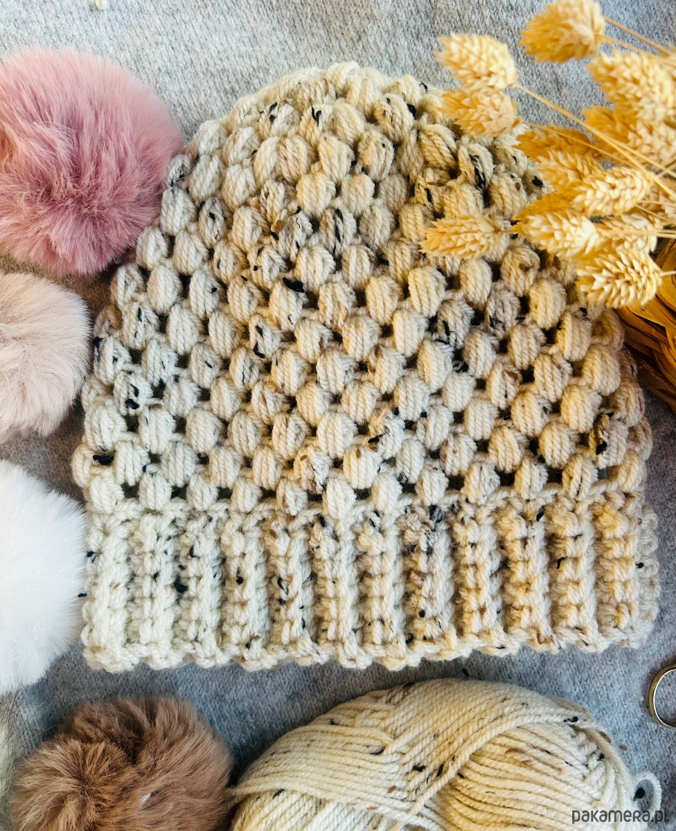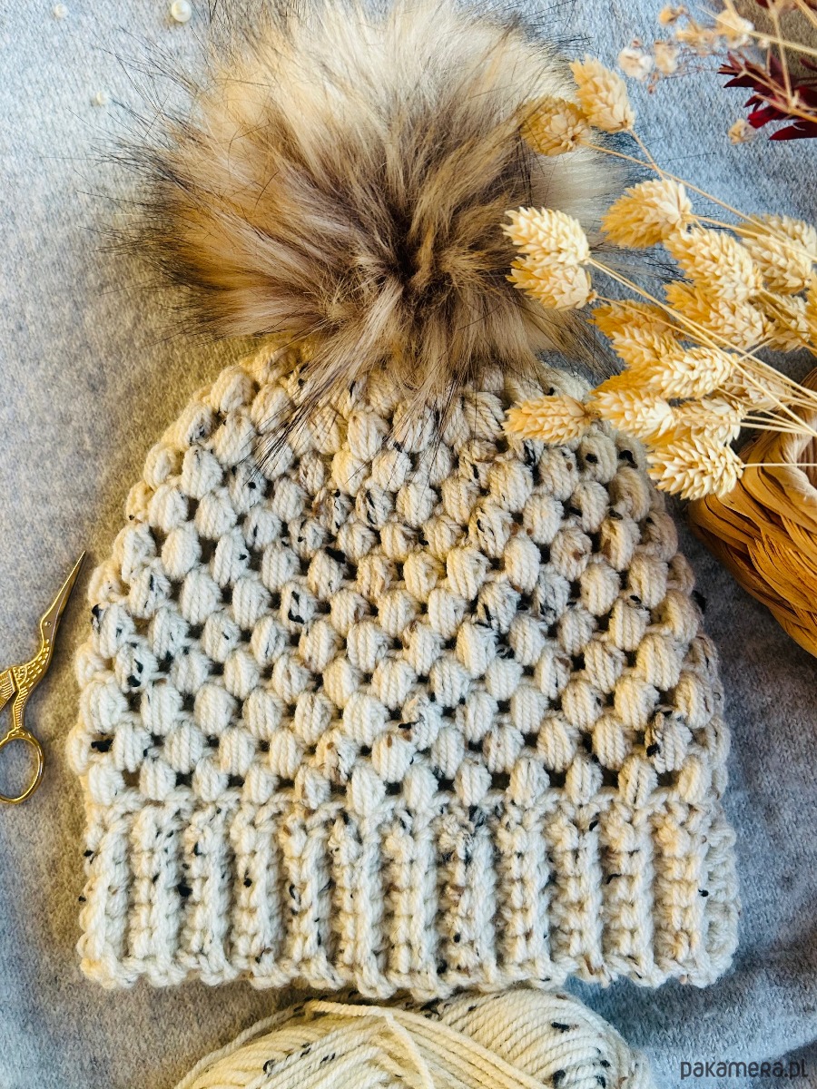 Ta czapka została wykonana na szydełku z wysokiej jakości przędzy, dzięki czemu jest niezwykle miękka, przyjemna w dotyku i idealnie otula głowę nawet w chłodne dni.