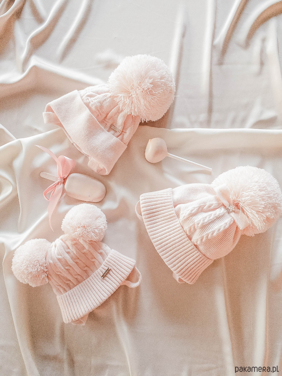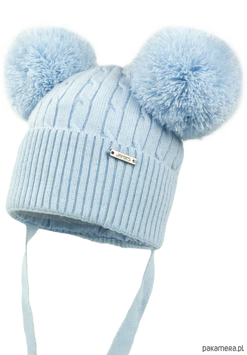 Czapka niemowlęca na zimę SINEM z dwoma pomponami niebieski