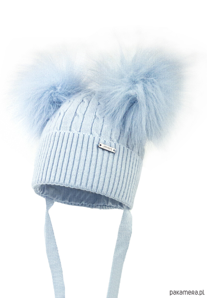 Czapka niemowlęca na zimę SINEM z dwoma pomponami niebieski