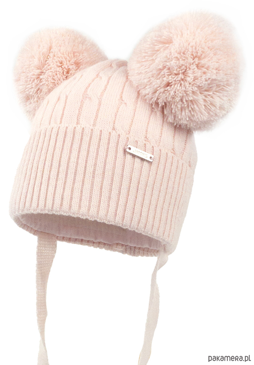 Czapka niemowlęca na zimę SINEM z dwoma pomponami róż