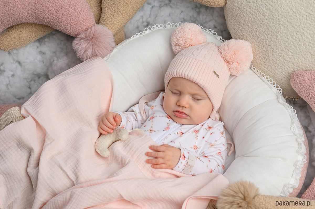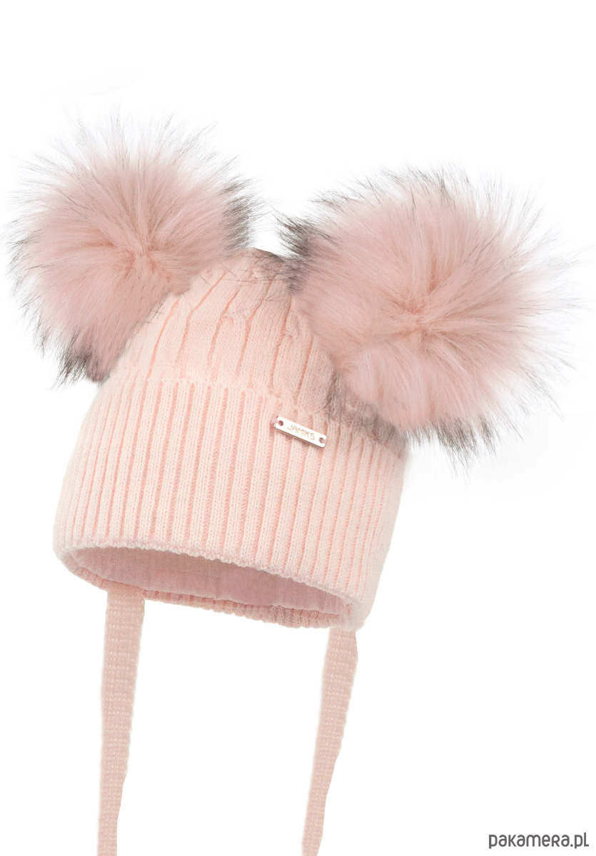 Czapka niemowlęca na zimę SINEM z dwoma pomponami róż